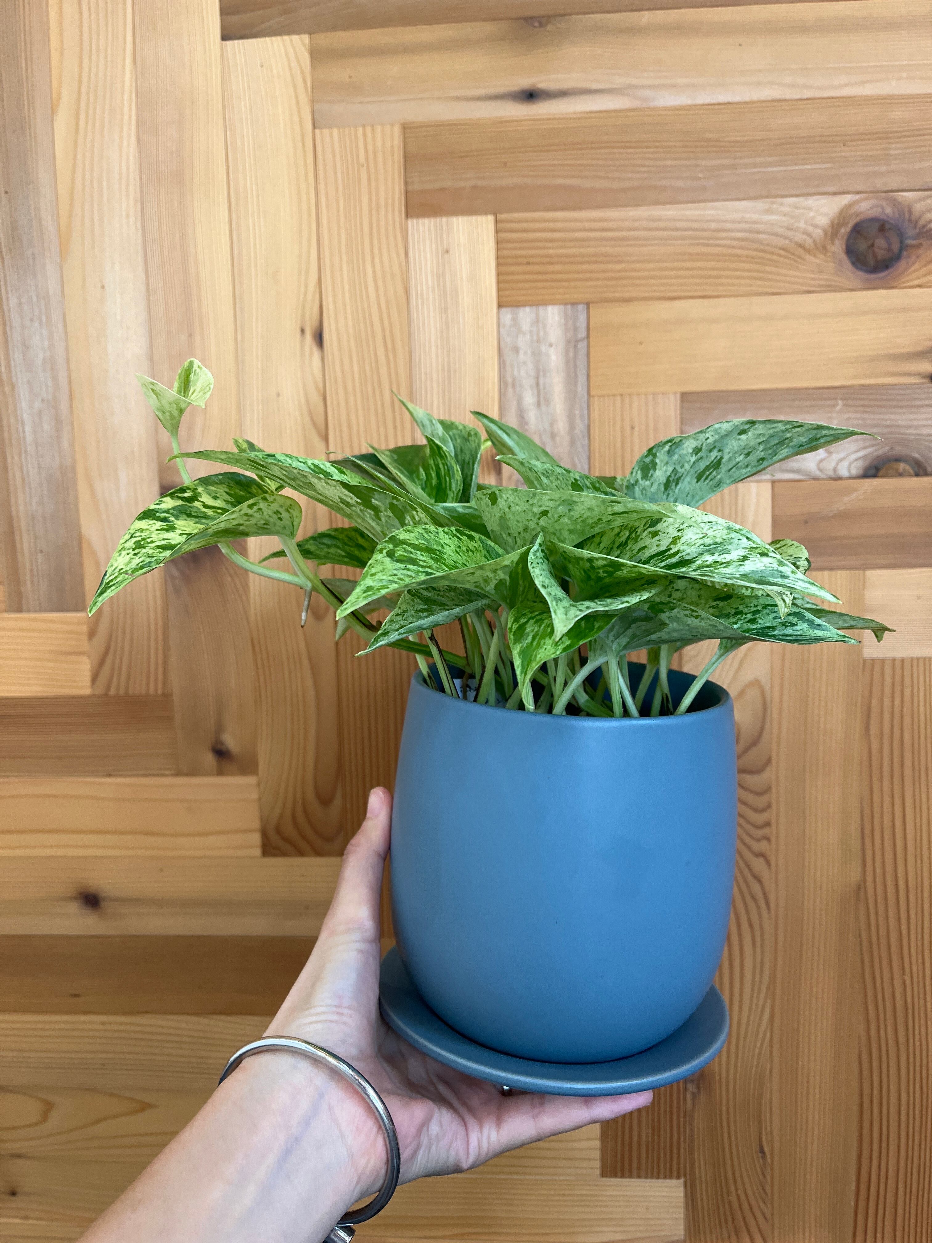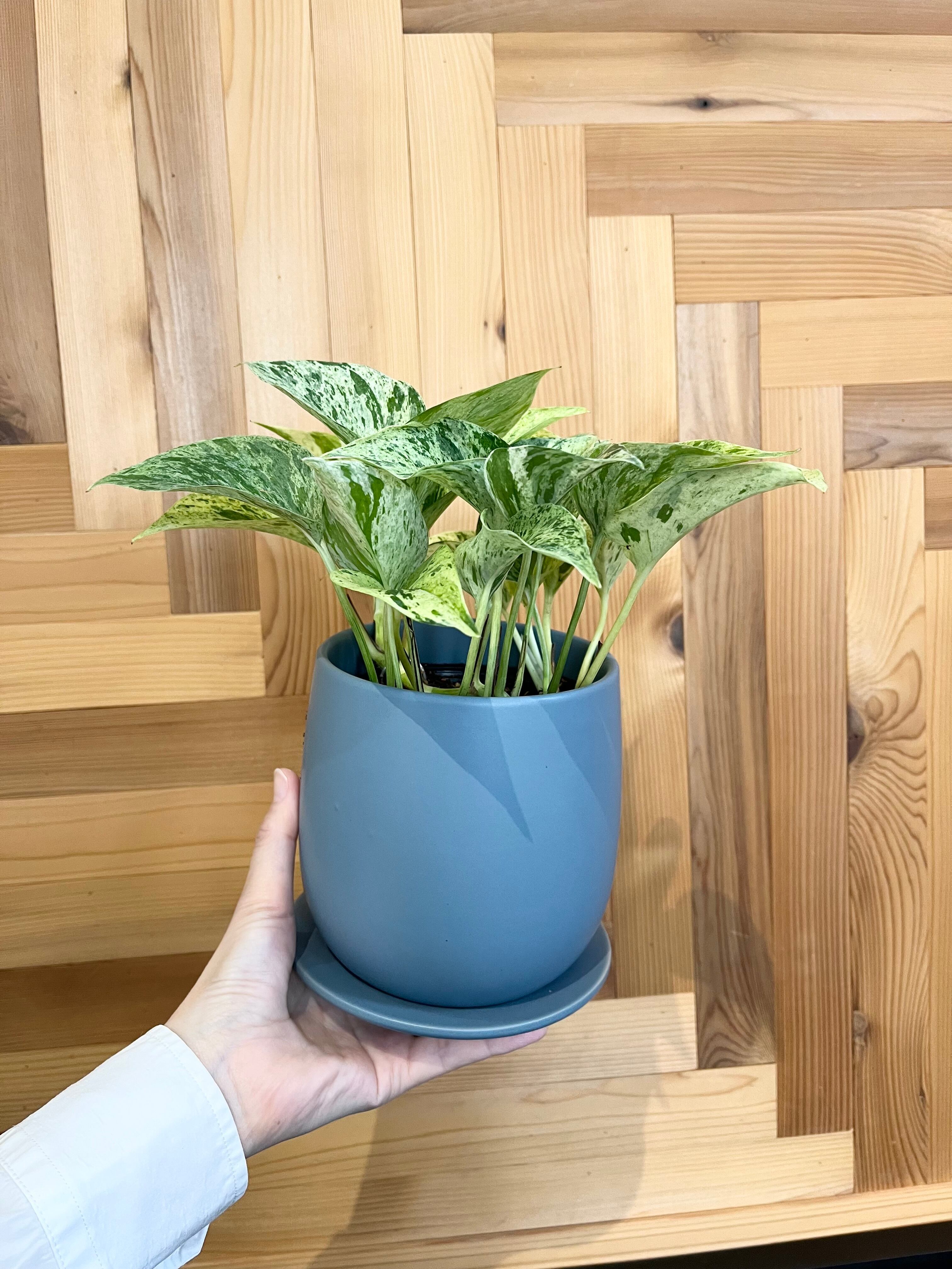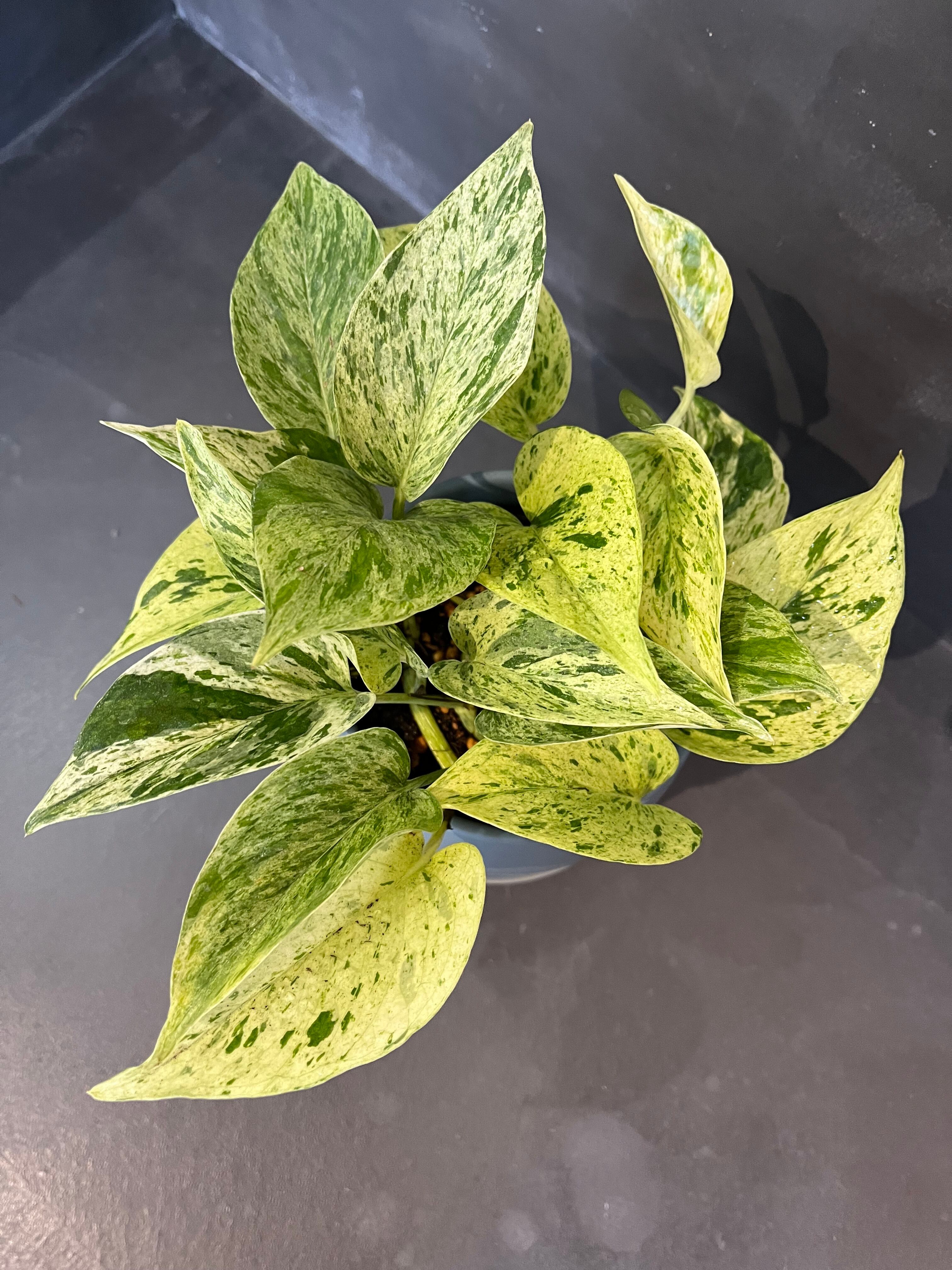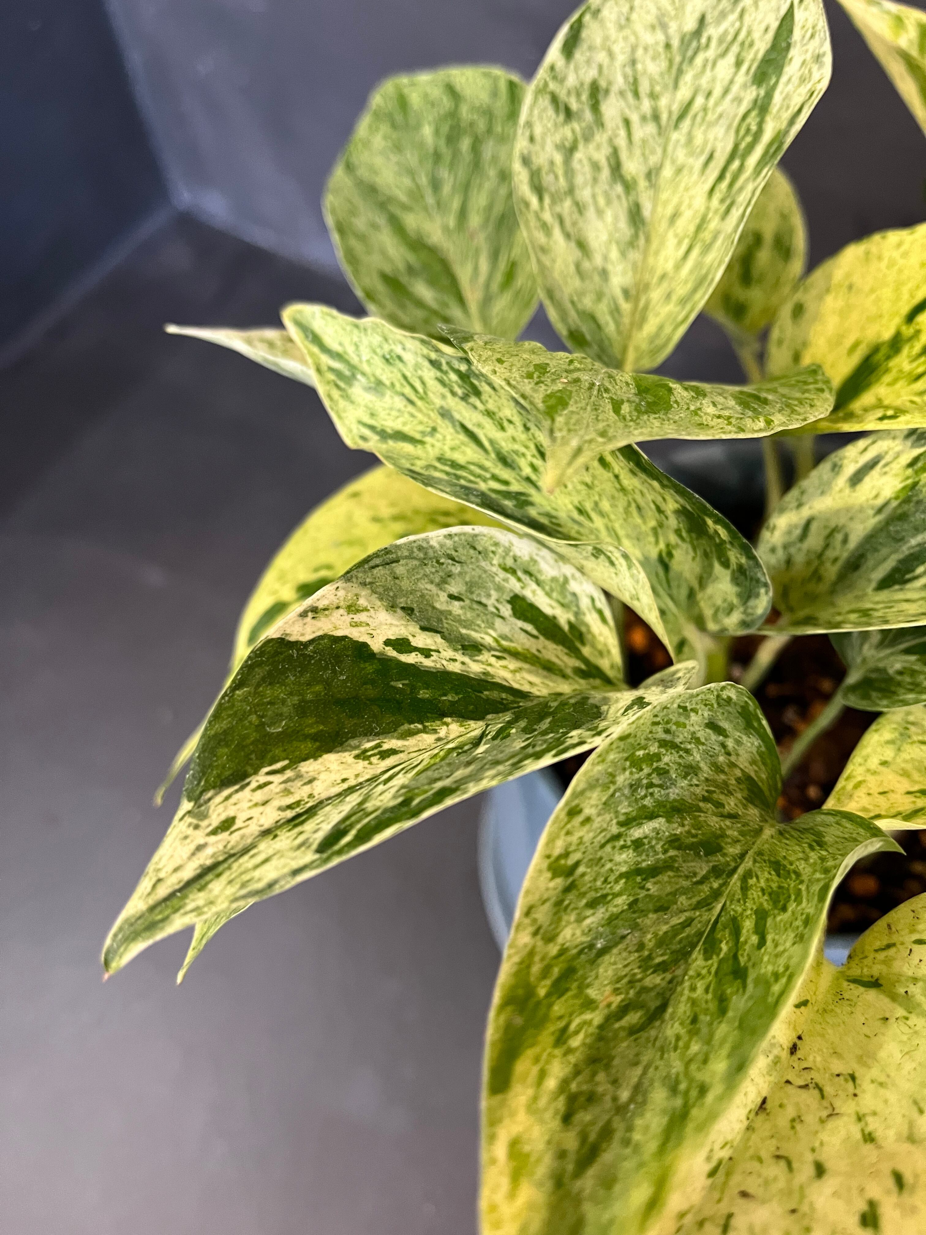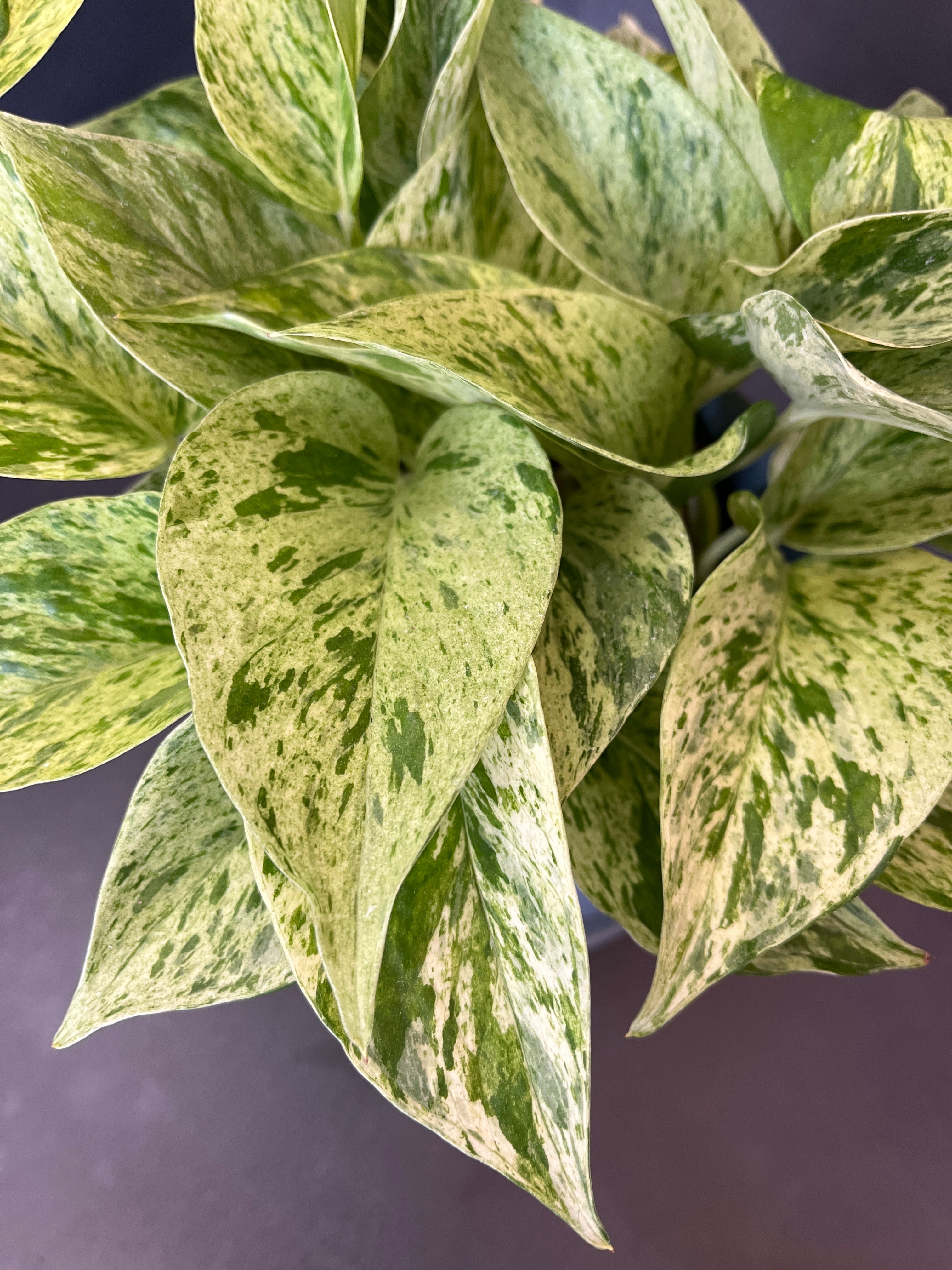 葉の全体が白っぽく明るくも上品な雰囲気のポトスマーブルクィーン。