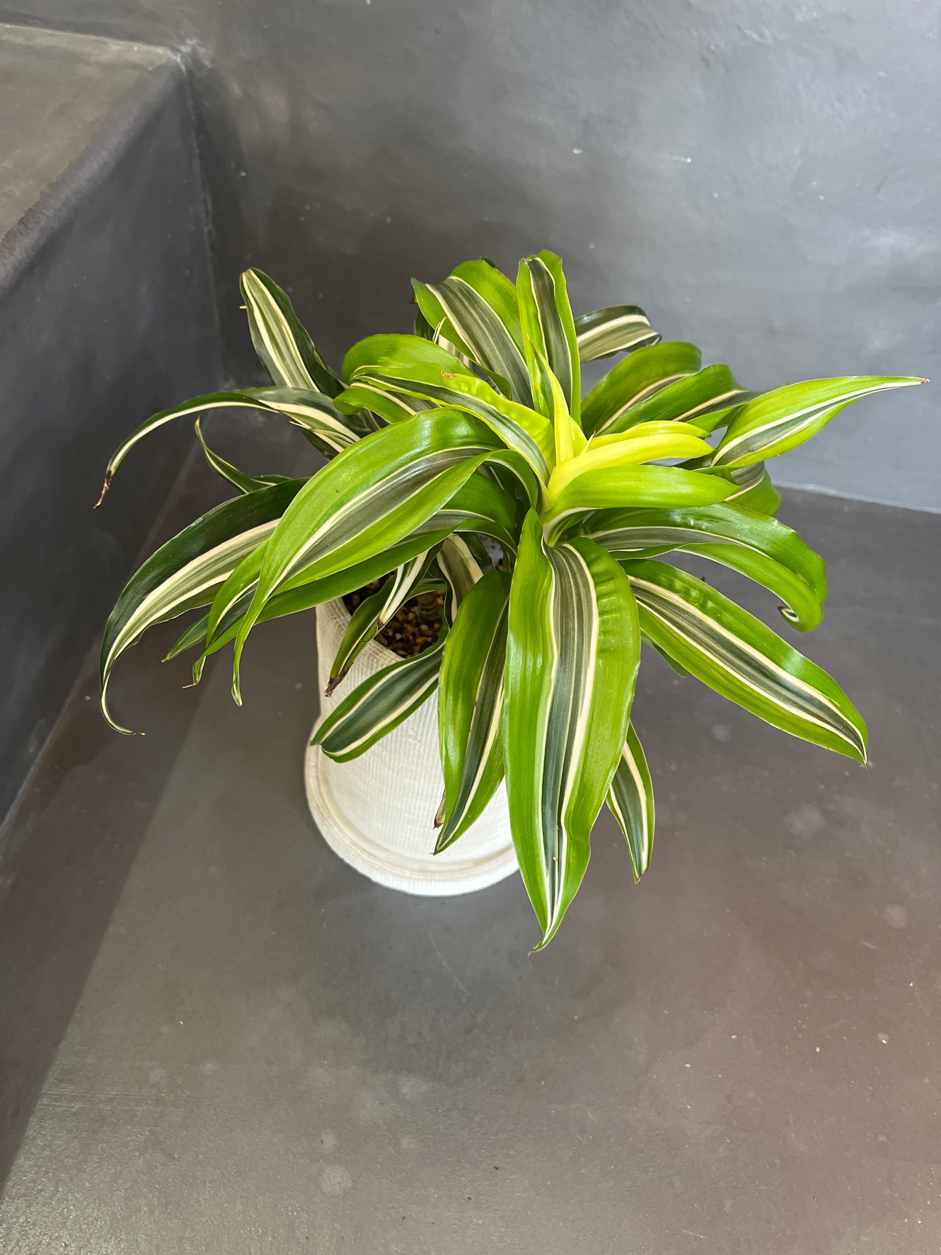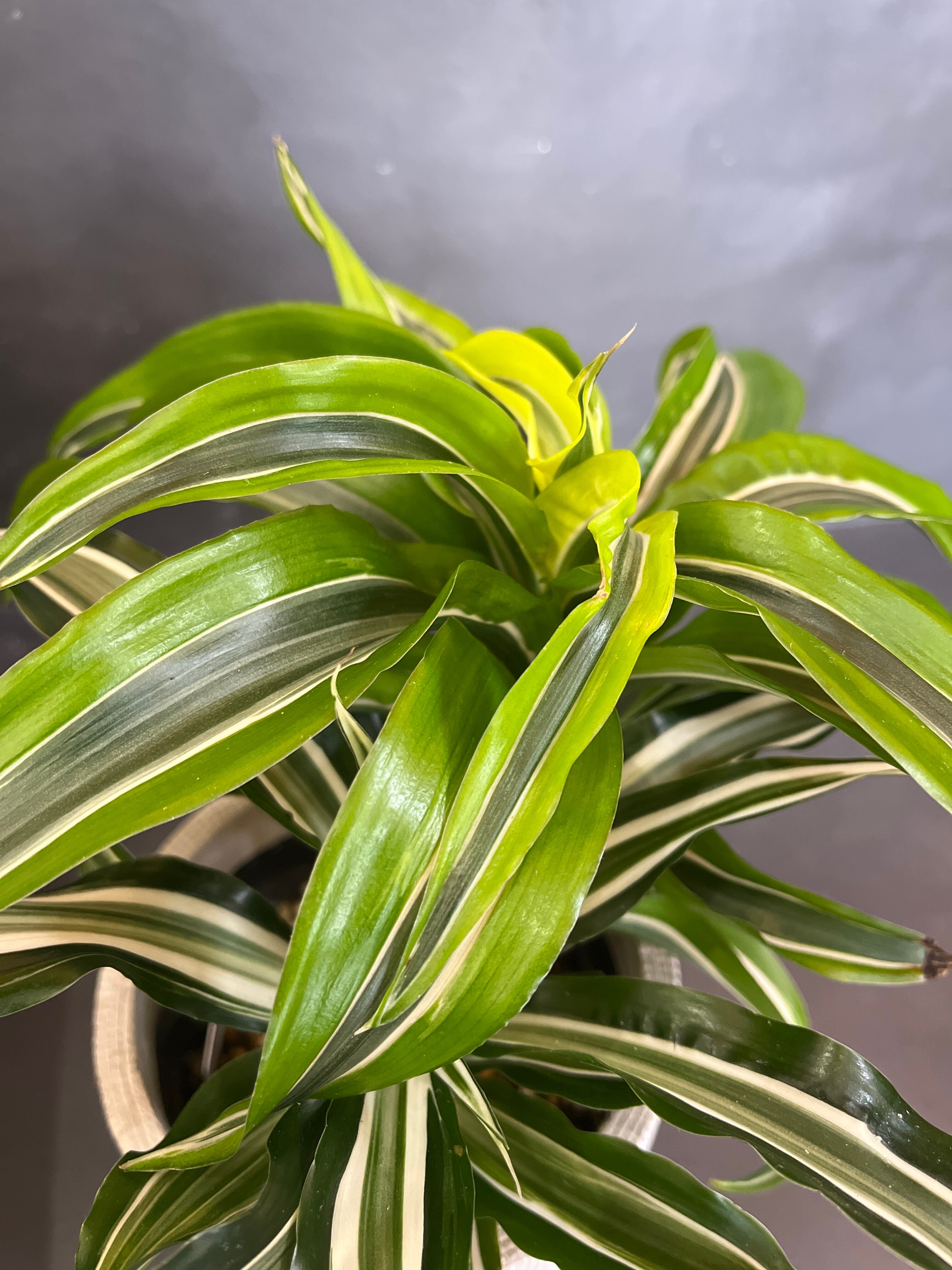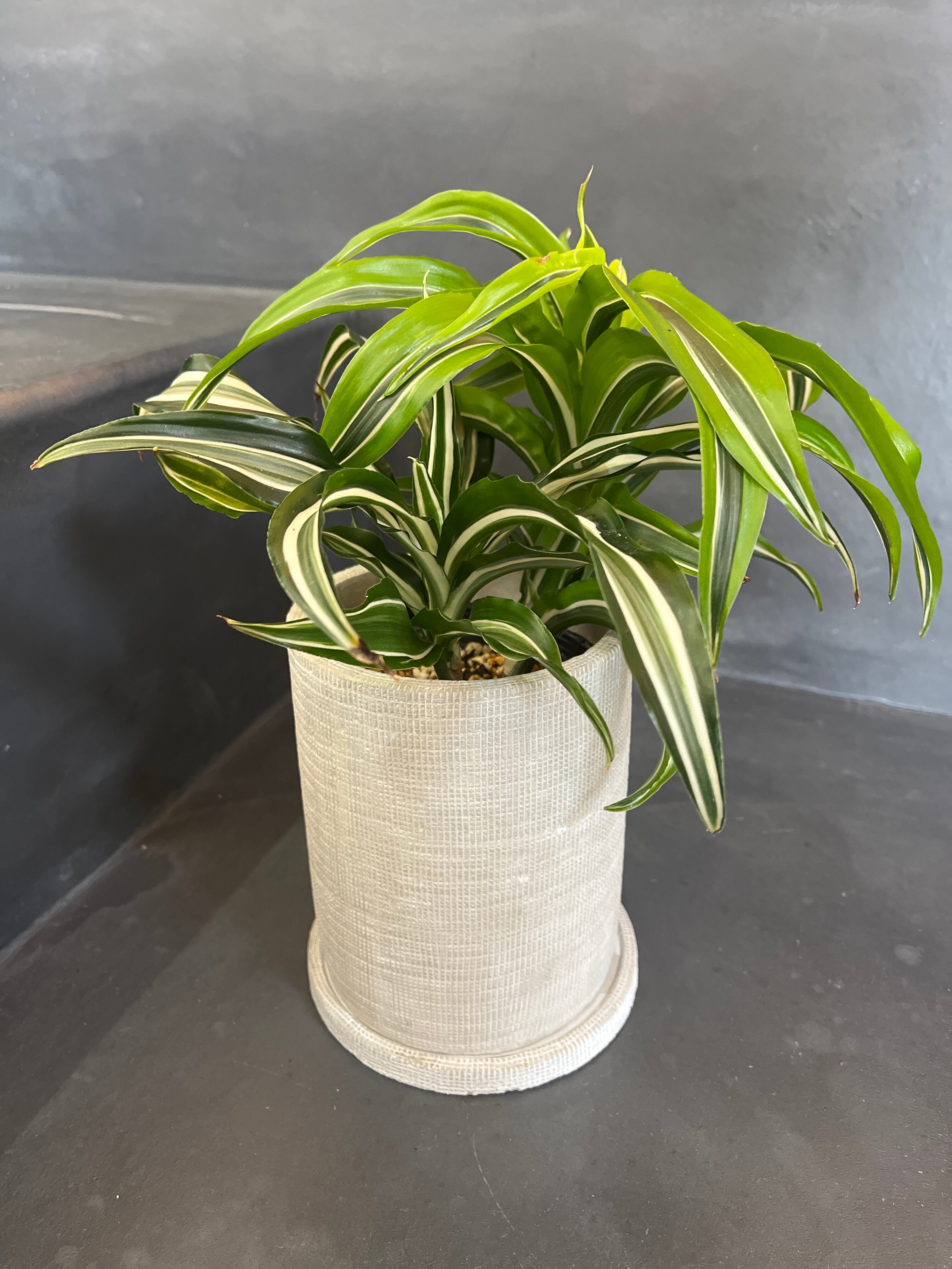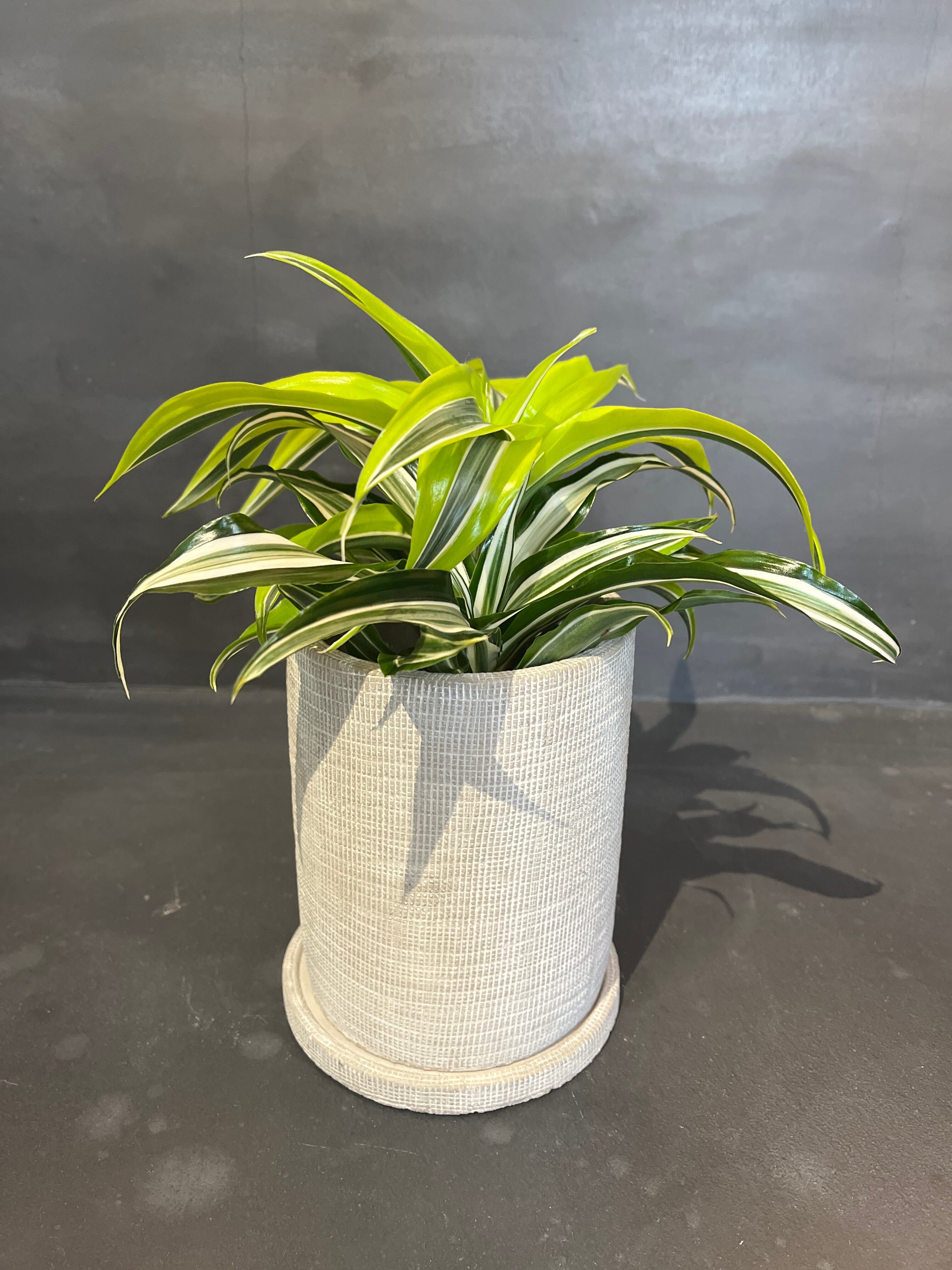 葉の色が美しいドラセナ2種の寄植えです。