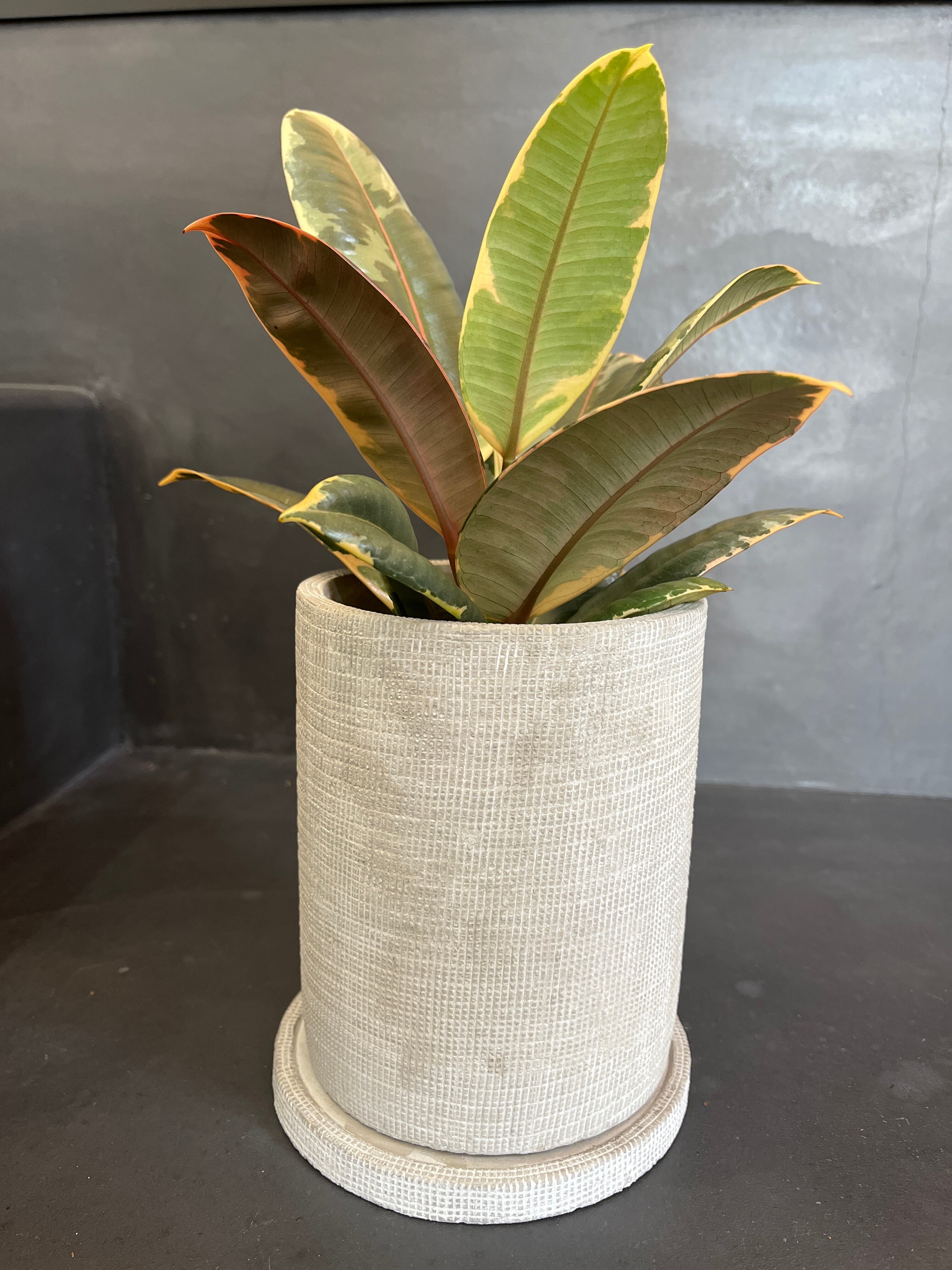鮮やかな葉の色が映えるように、シンプルなラインの鉢と合わせました。