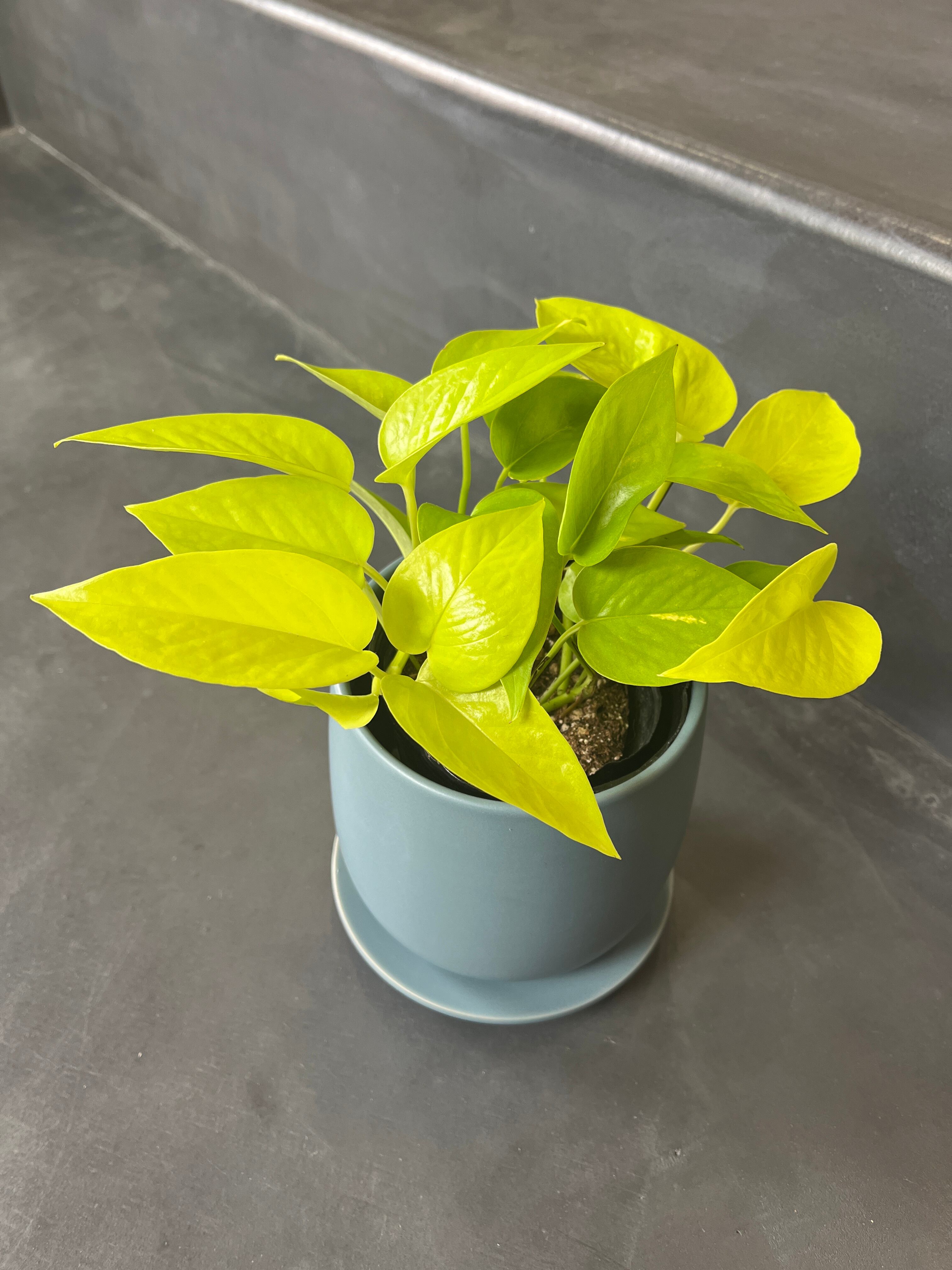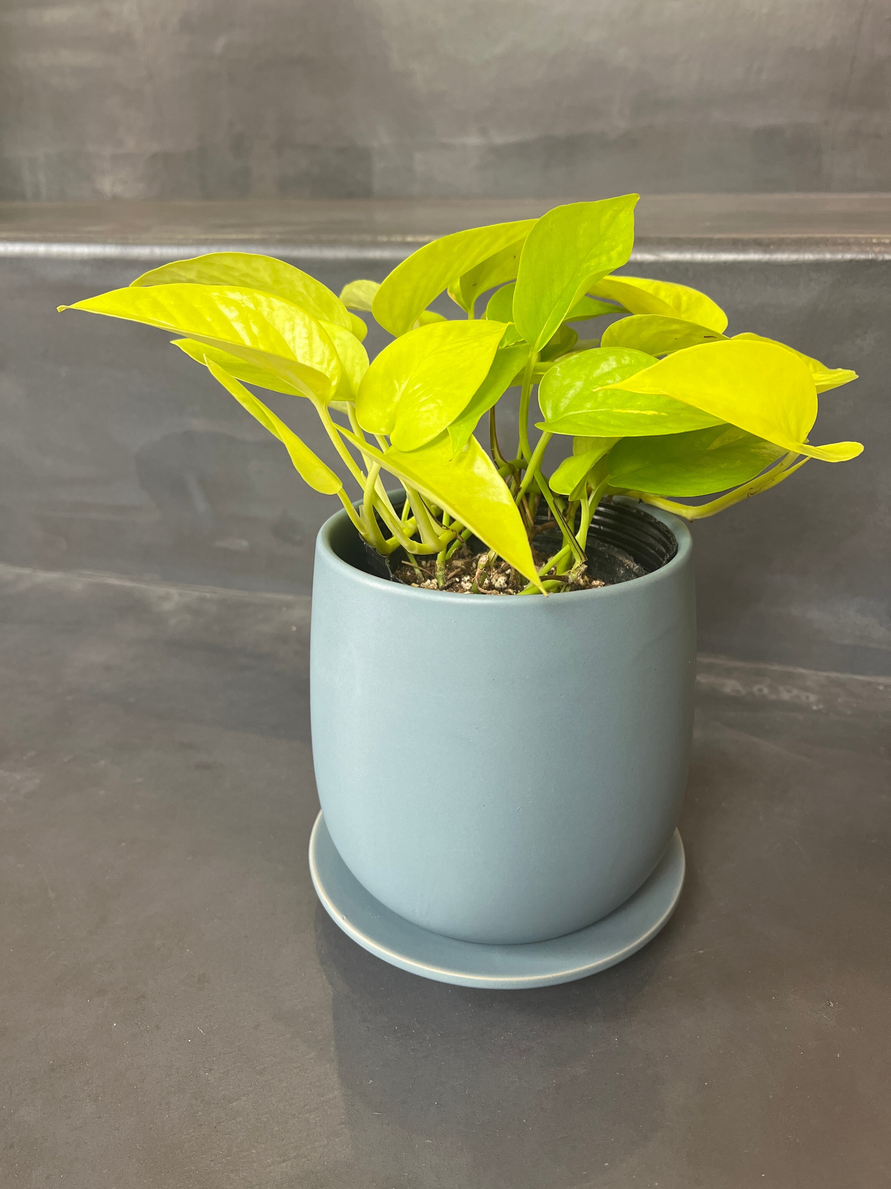 イエローが際立たつ様にブルーの鉢をチョイスしました。
