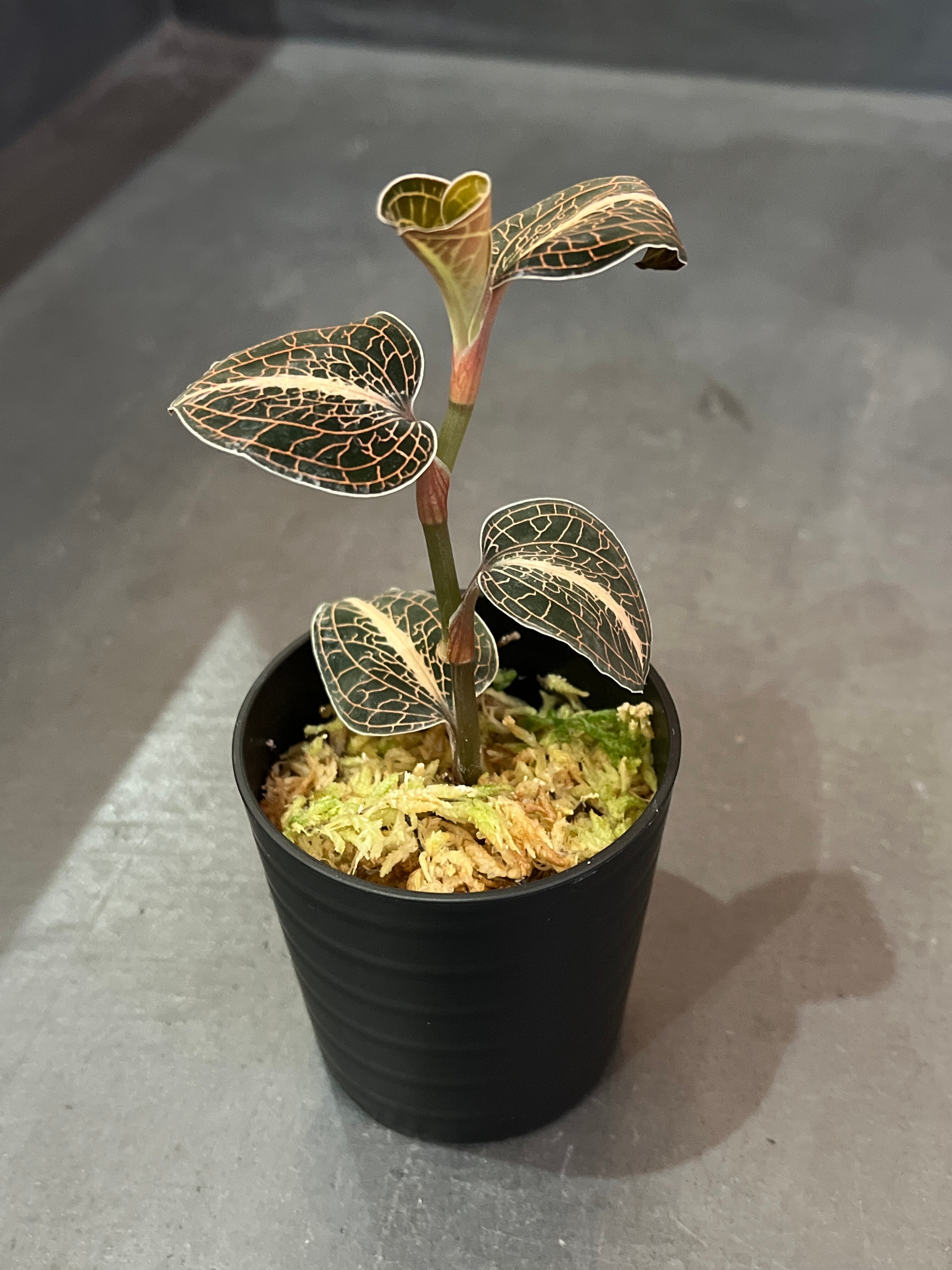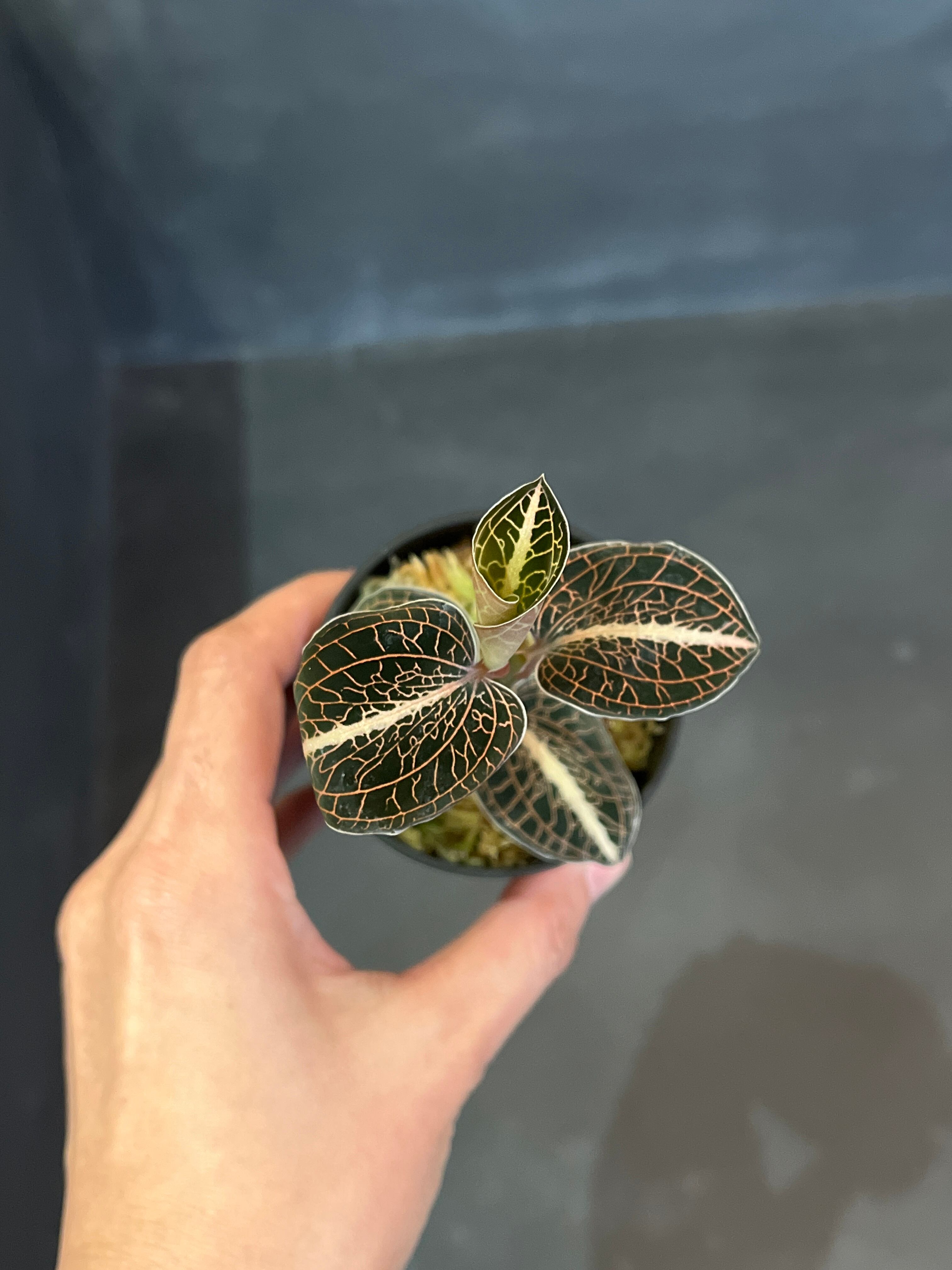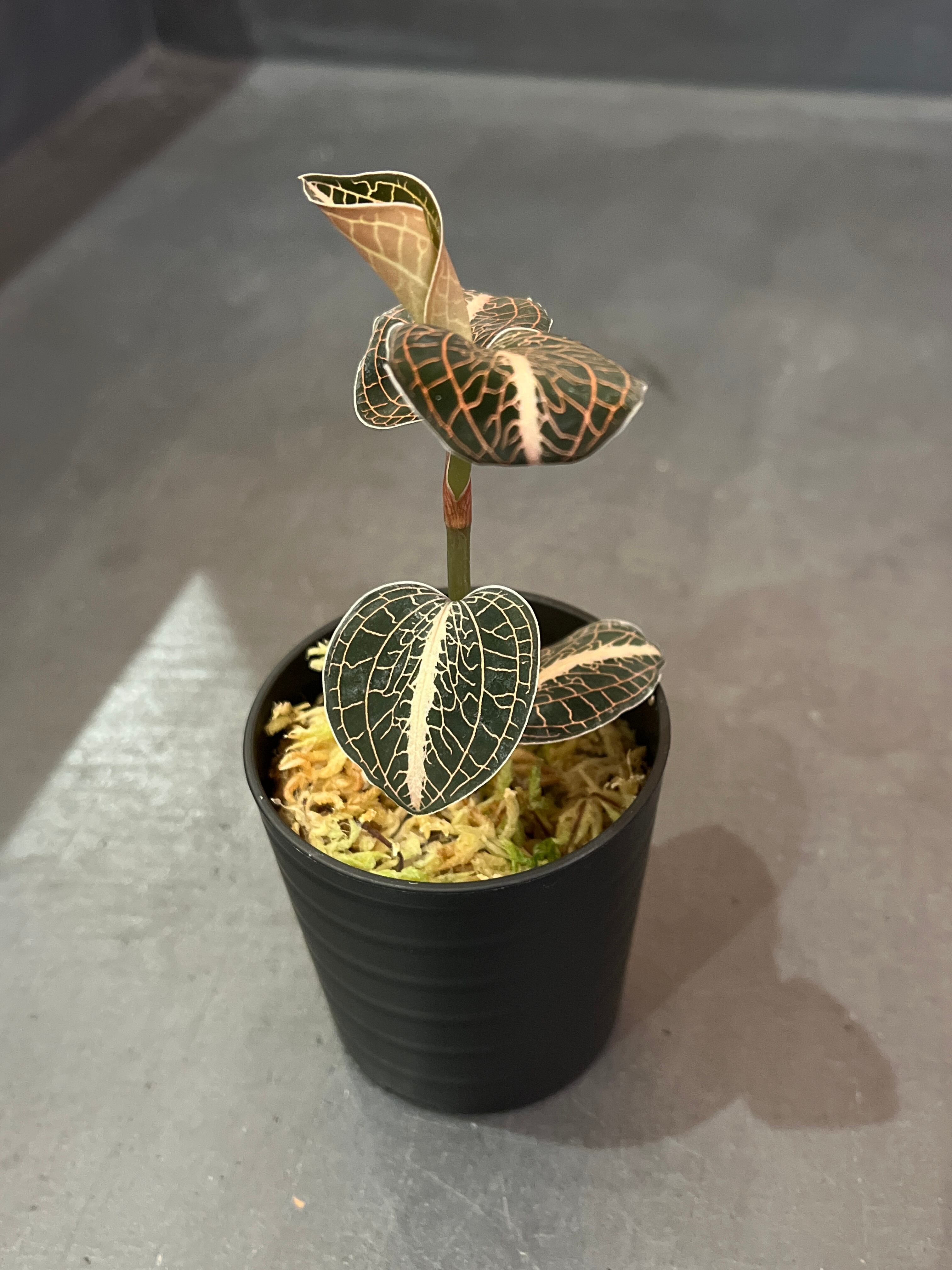 「宝石蘭」ジュエルオーキッドと呼ばれているビロード状の葉に光り輝く葉脈が美しい不思議な蘭です。