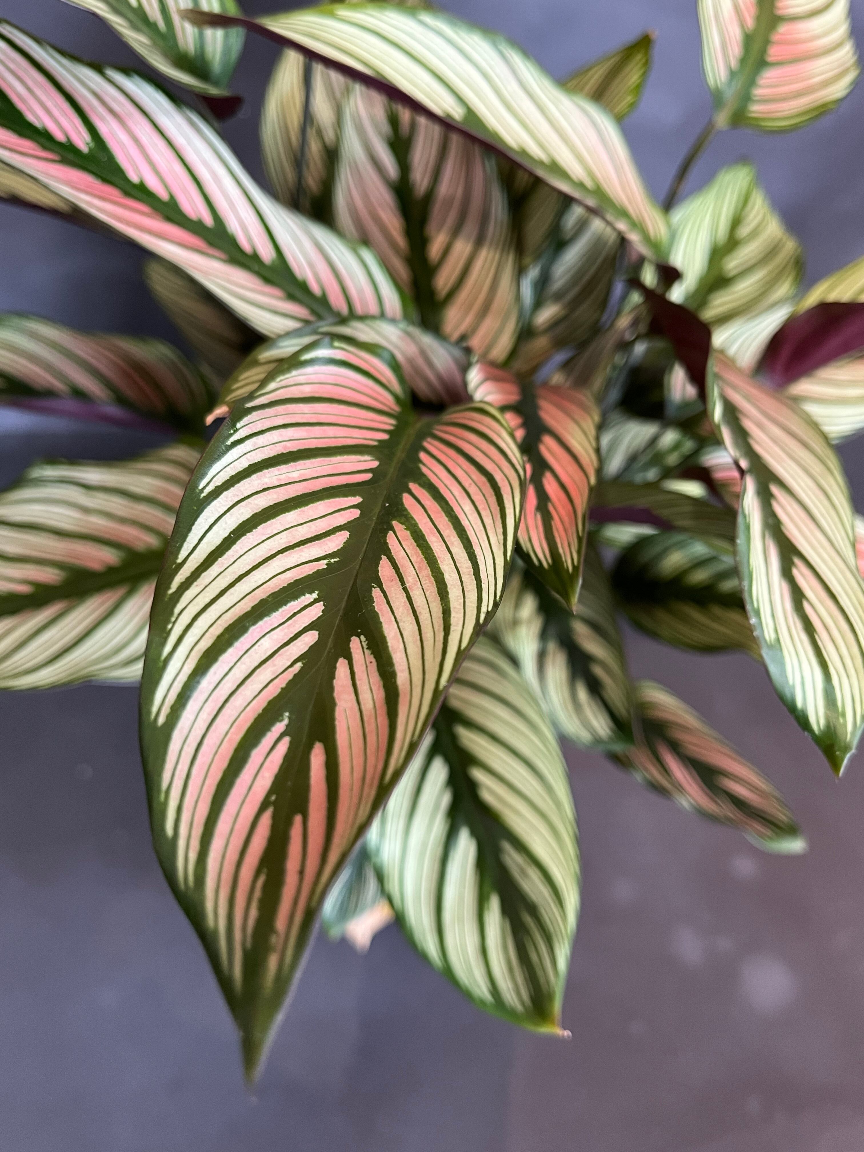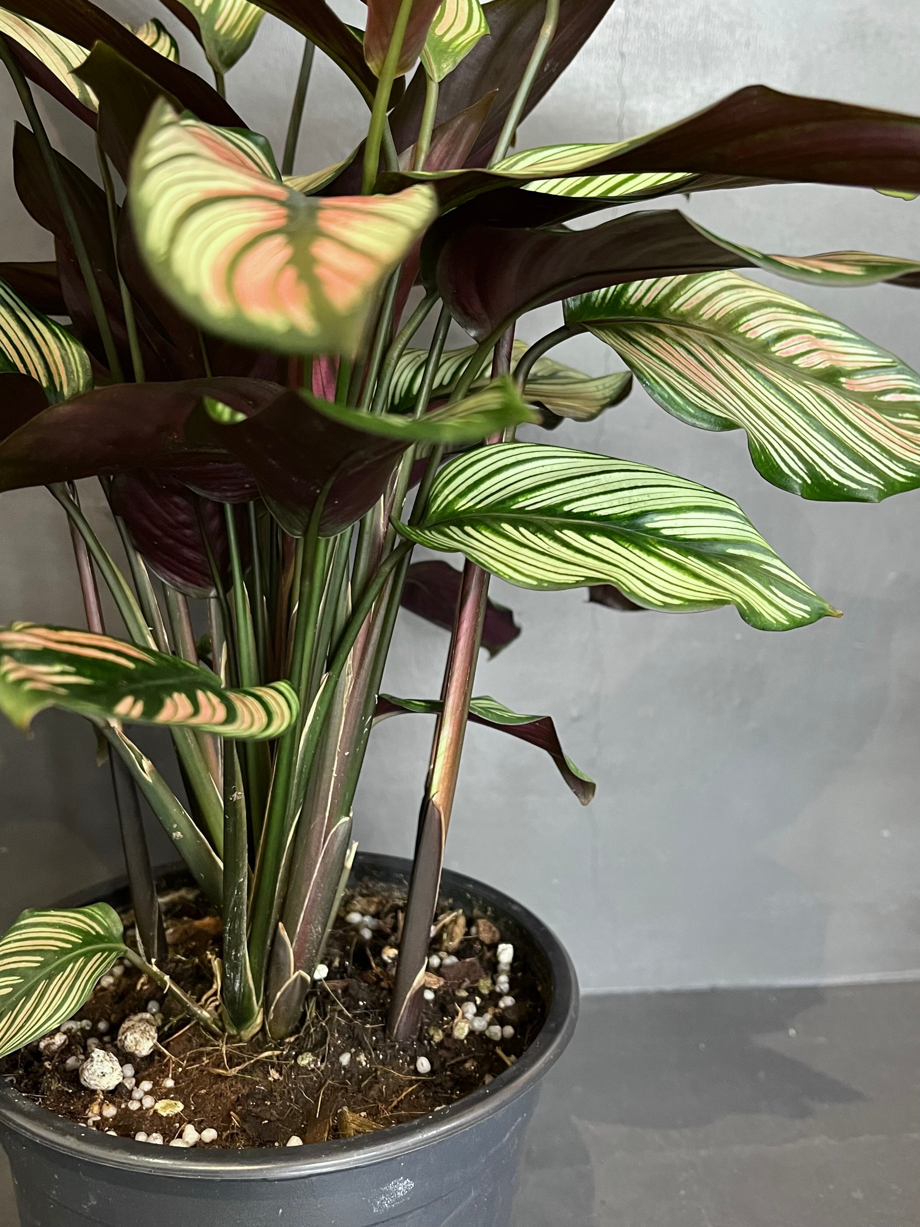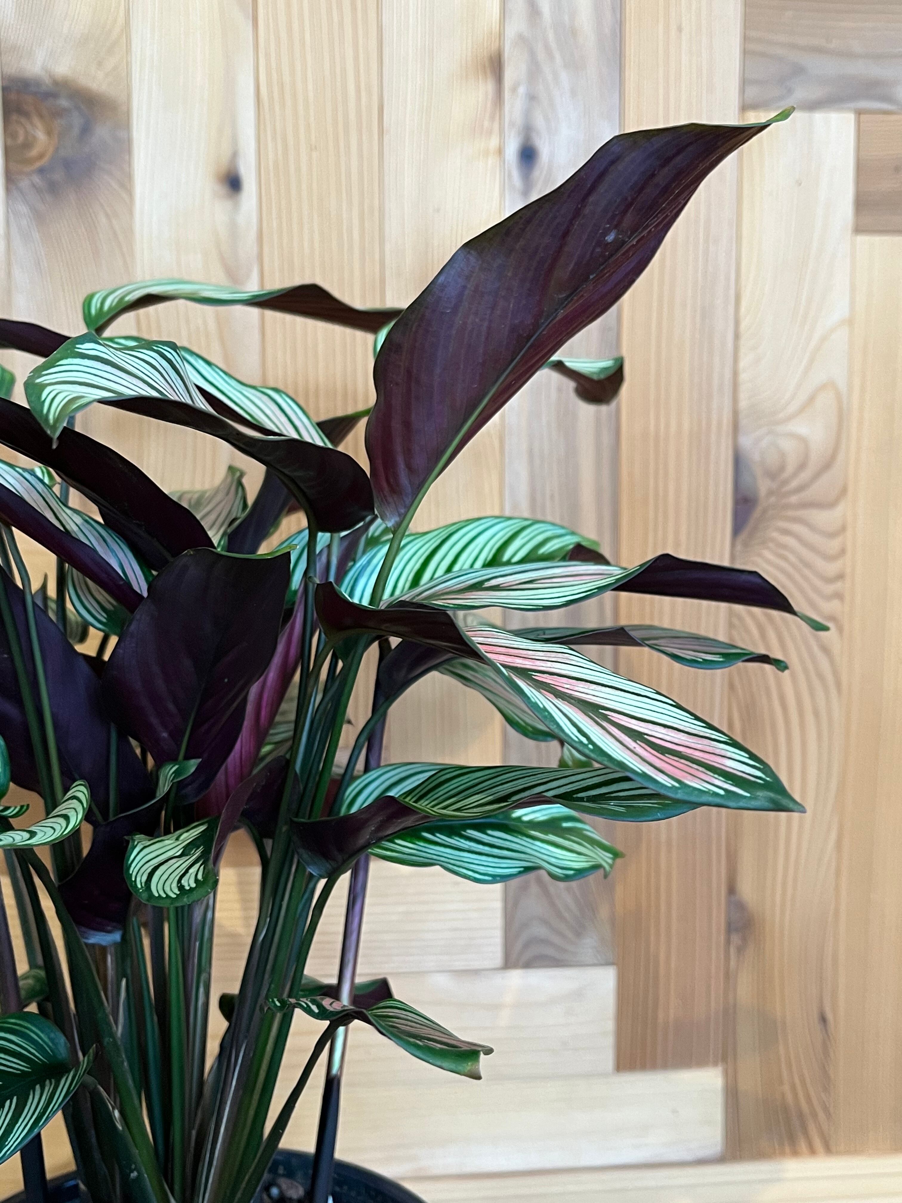 葉裏は赤紫で表と裏のコントラストがなんとも綺麗なカラテアです。
