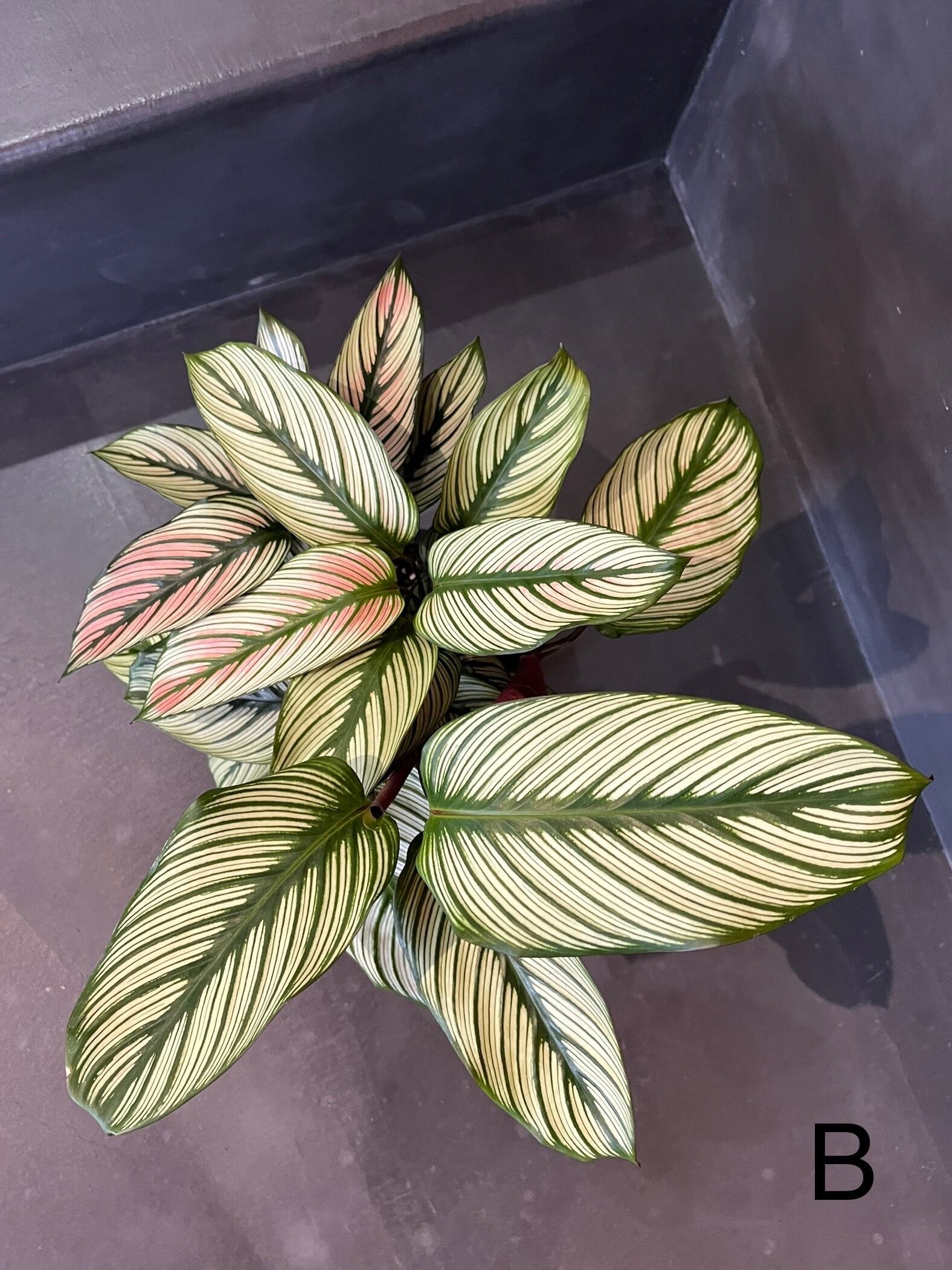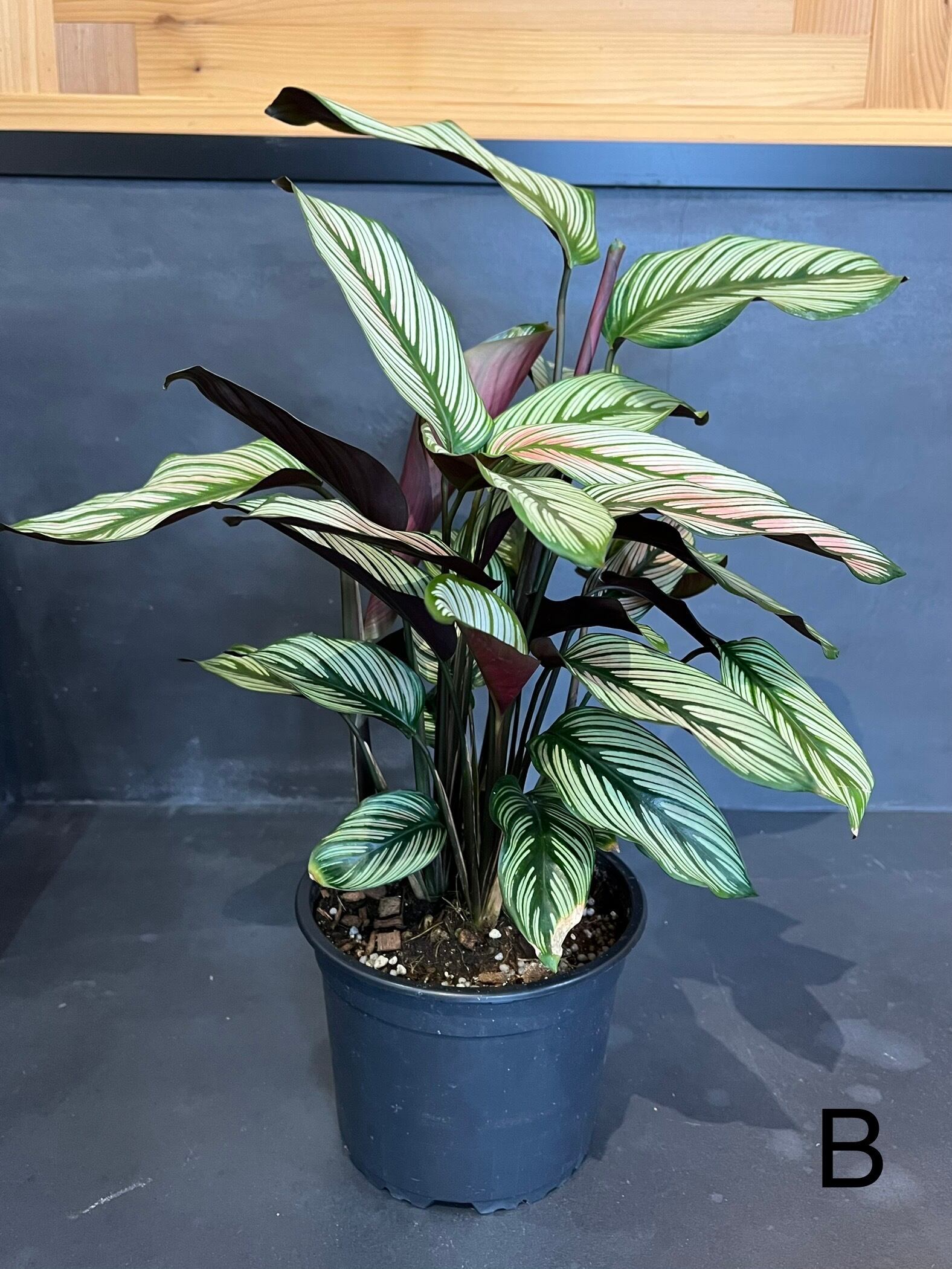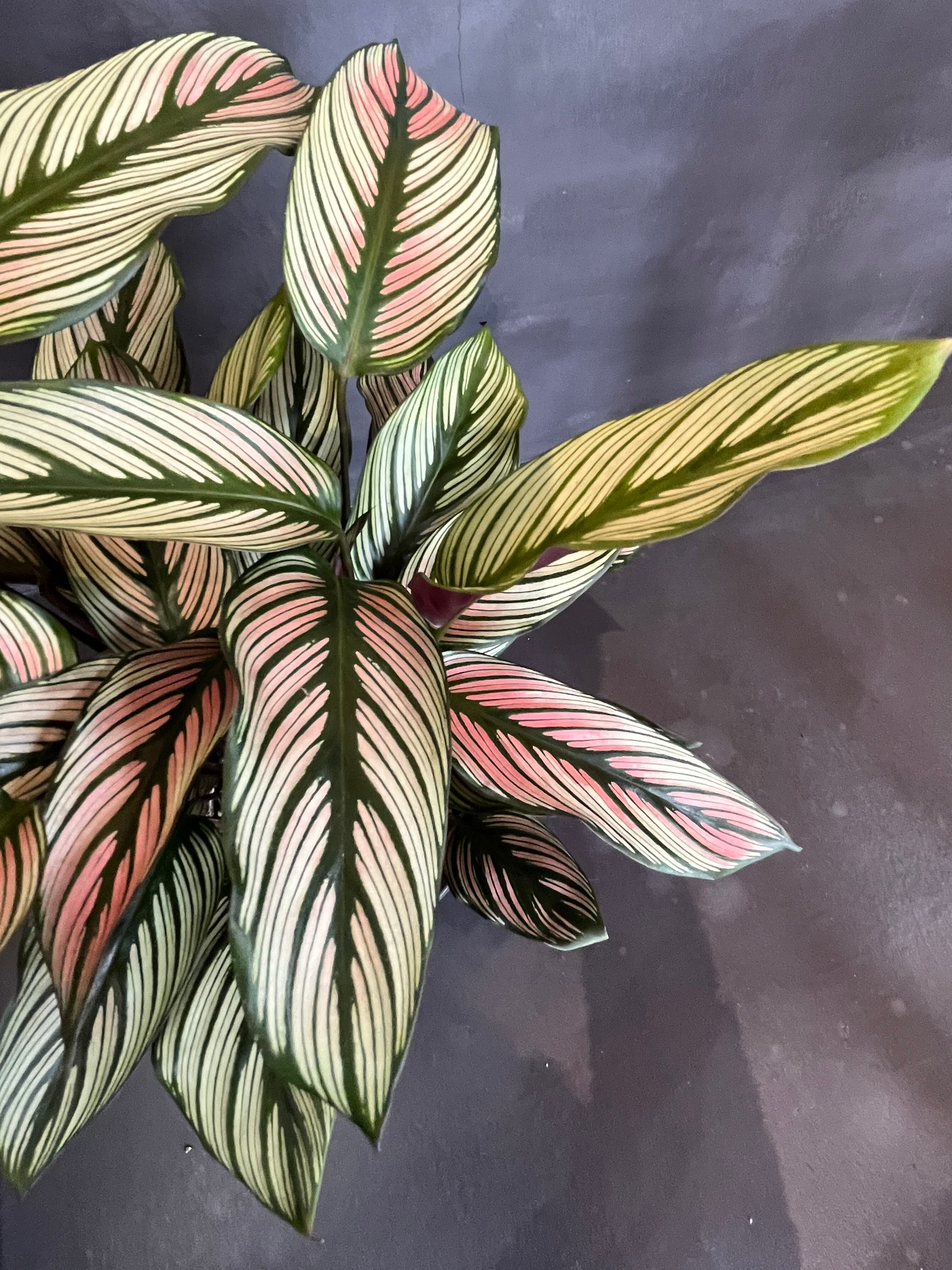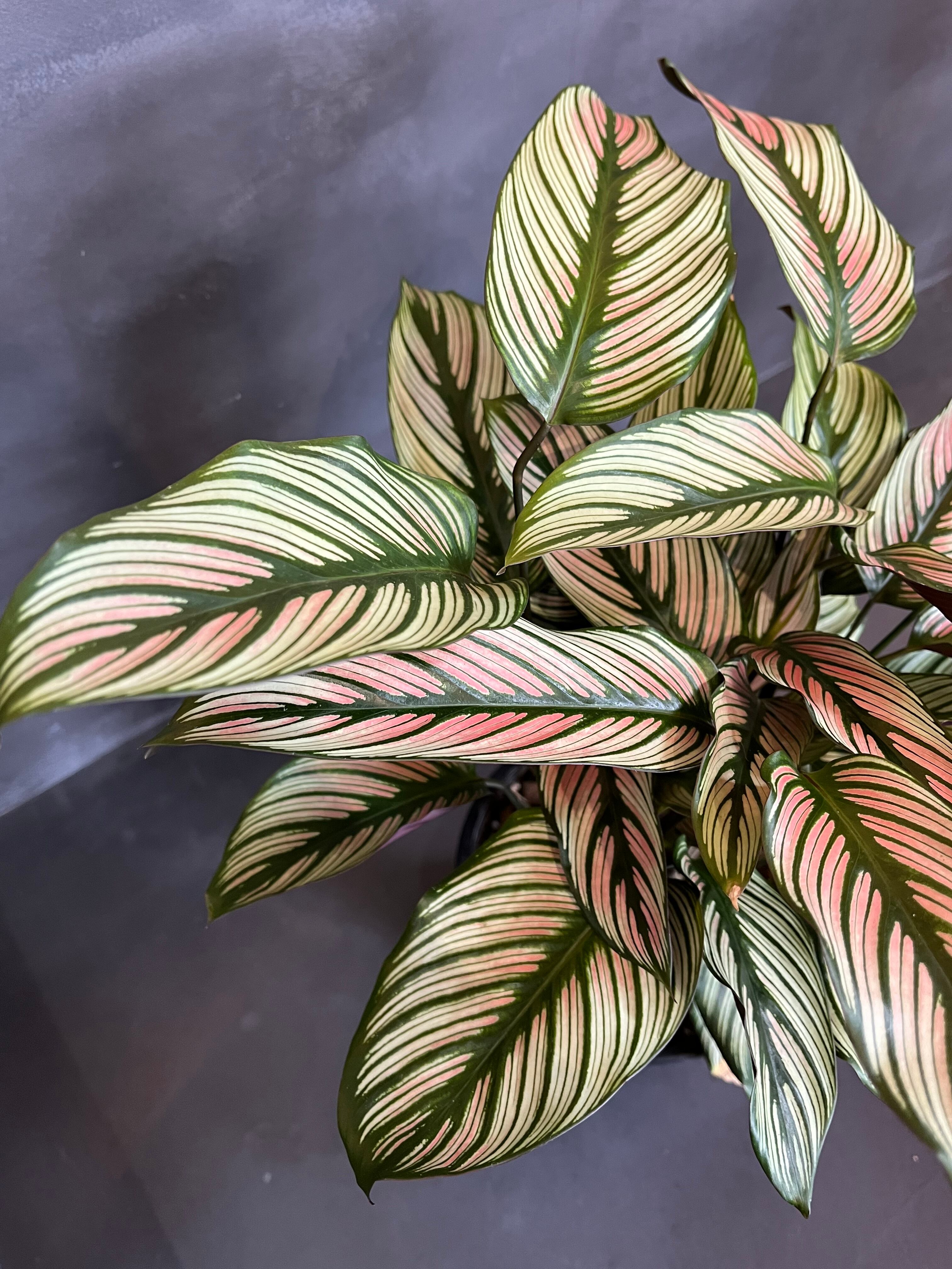 葉裏は赤紫で表と裏のコントラストがなんとも綺麗なカラテアです。