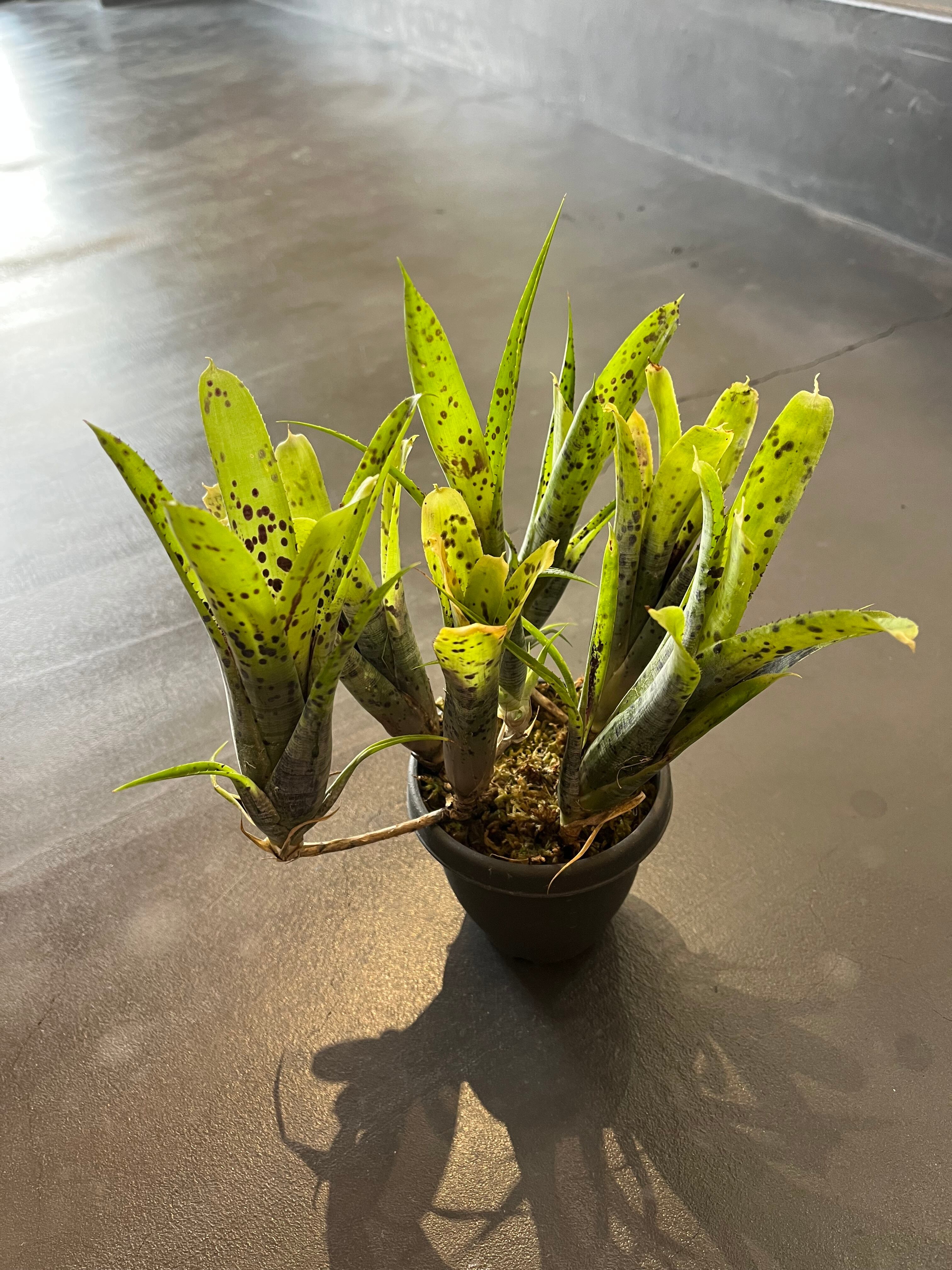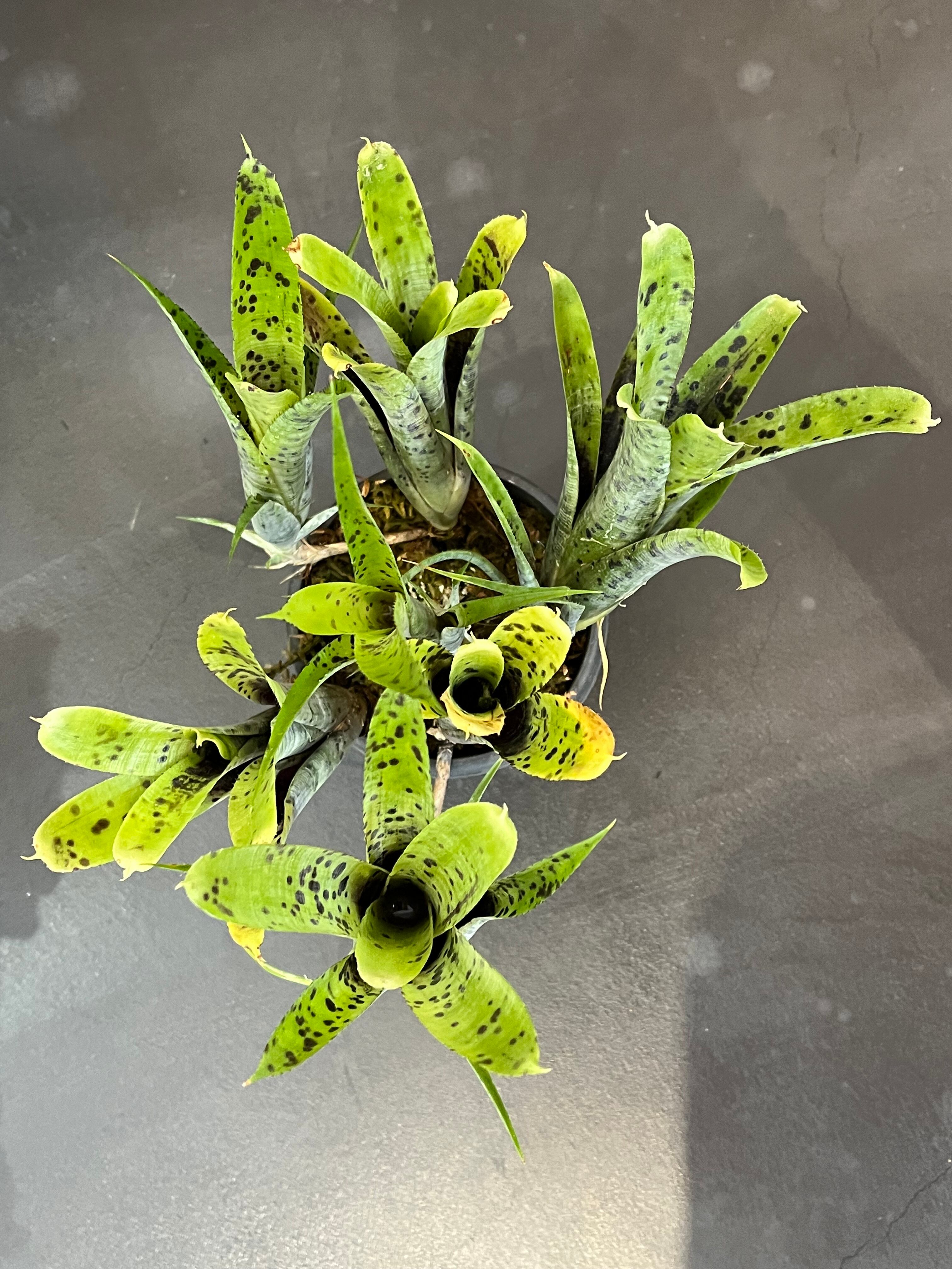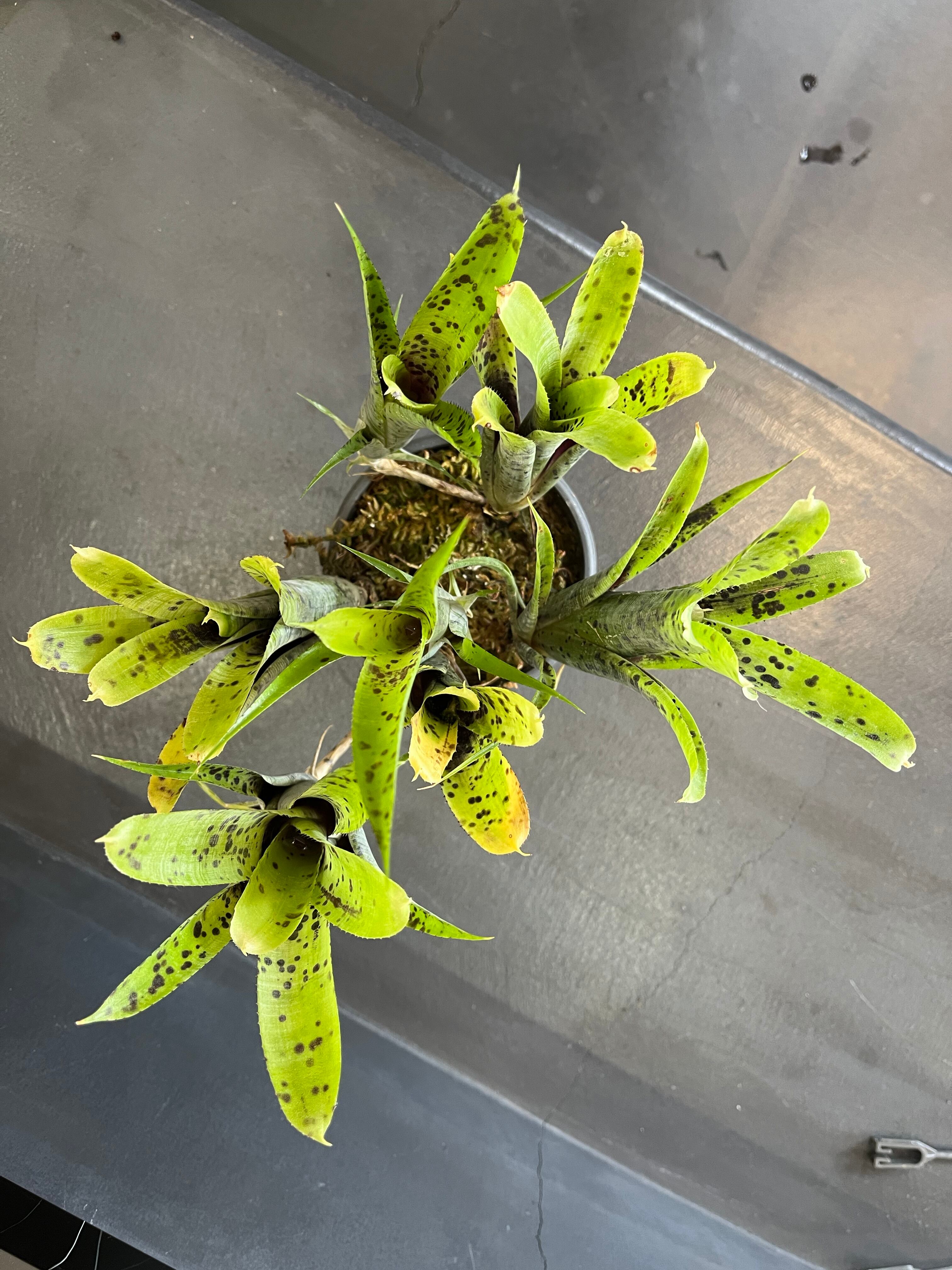 放射状に葉を広げ、シャンデリアのように株が増えていくシルエットが個性的なアナナスネオレゲリア。