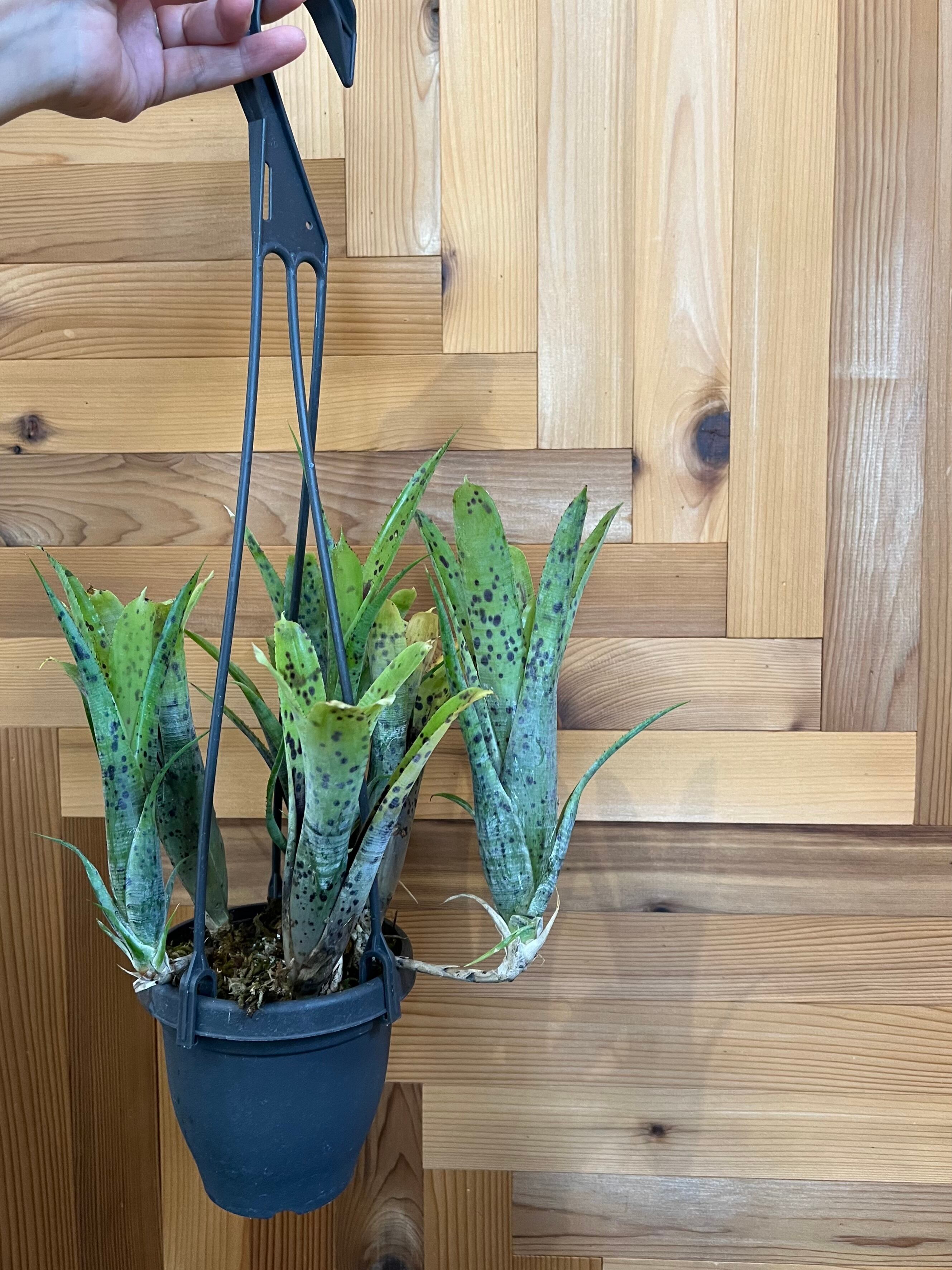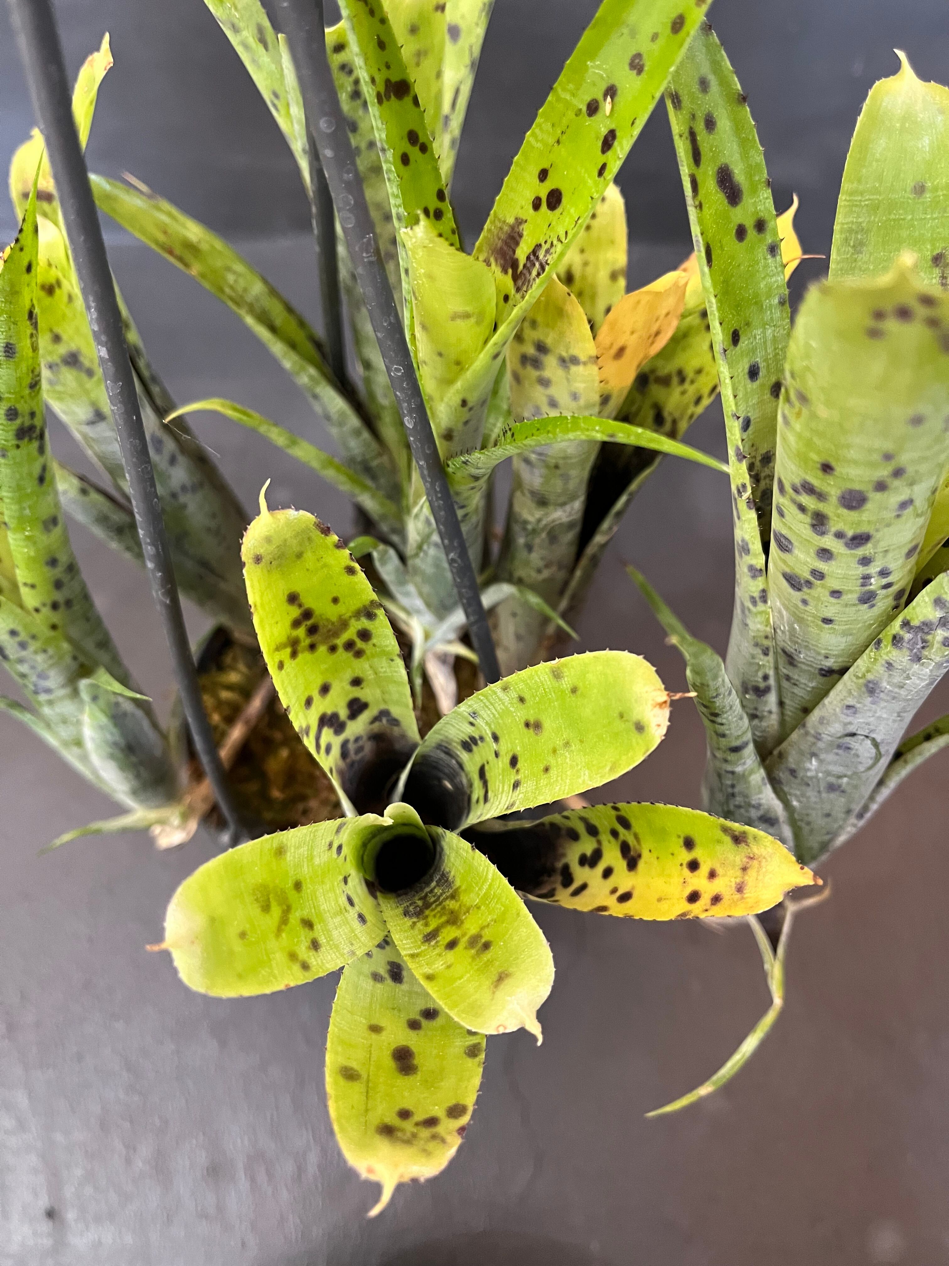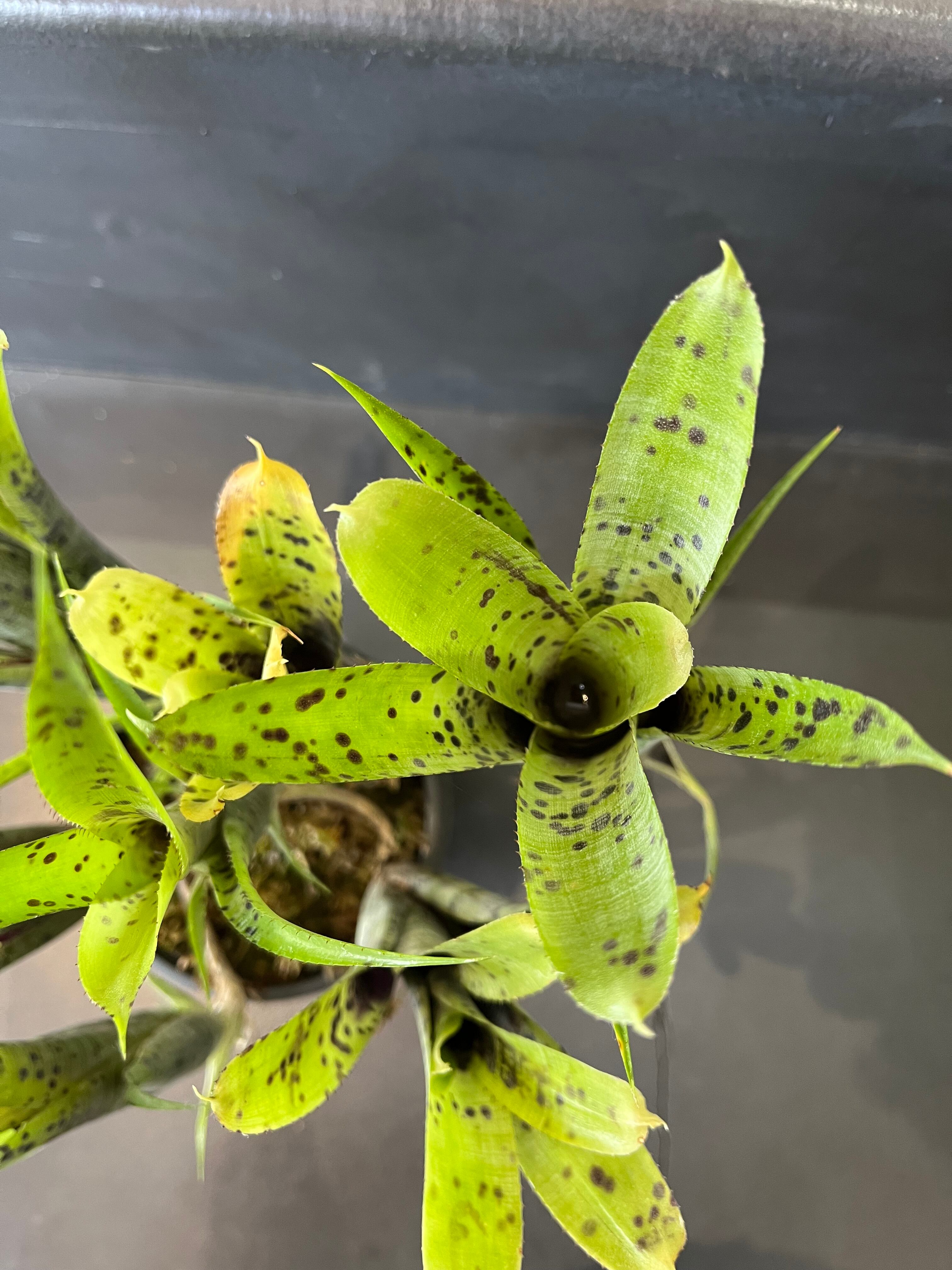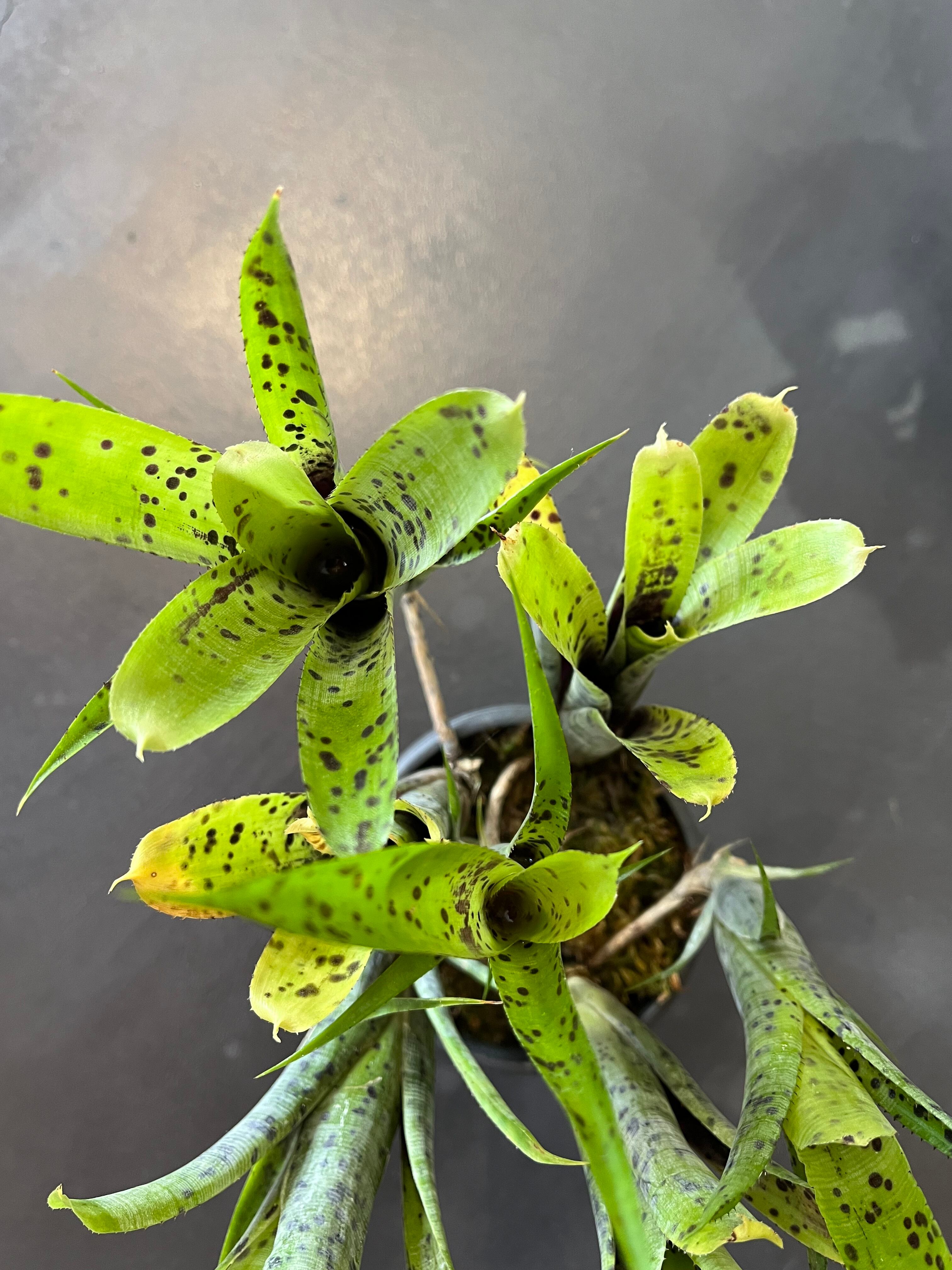 放射状に葉を広げ、シャンデリアのように株が増えていくシルエットが個性的なアナナスネオレゲリア。