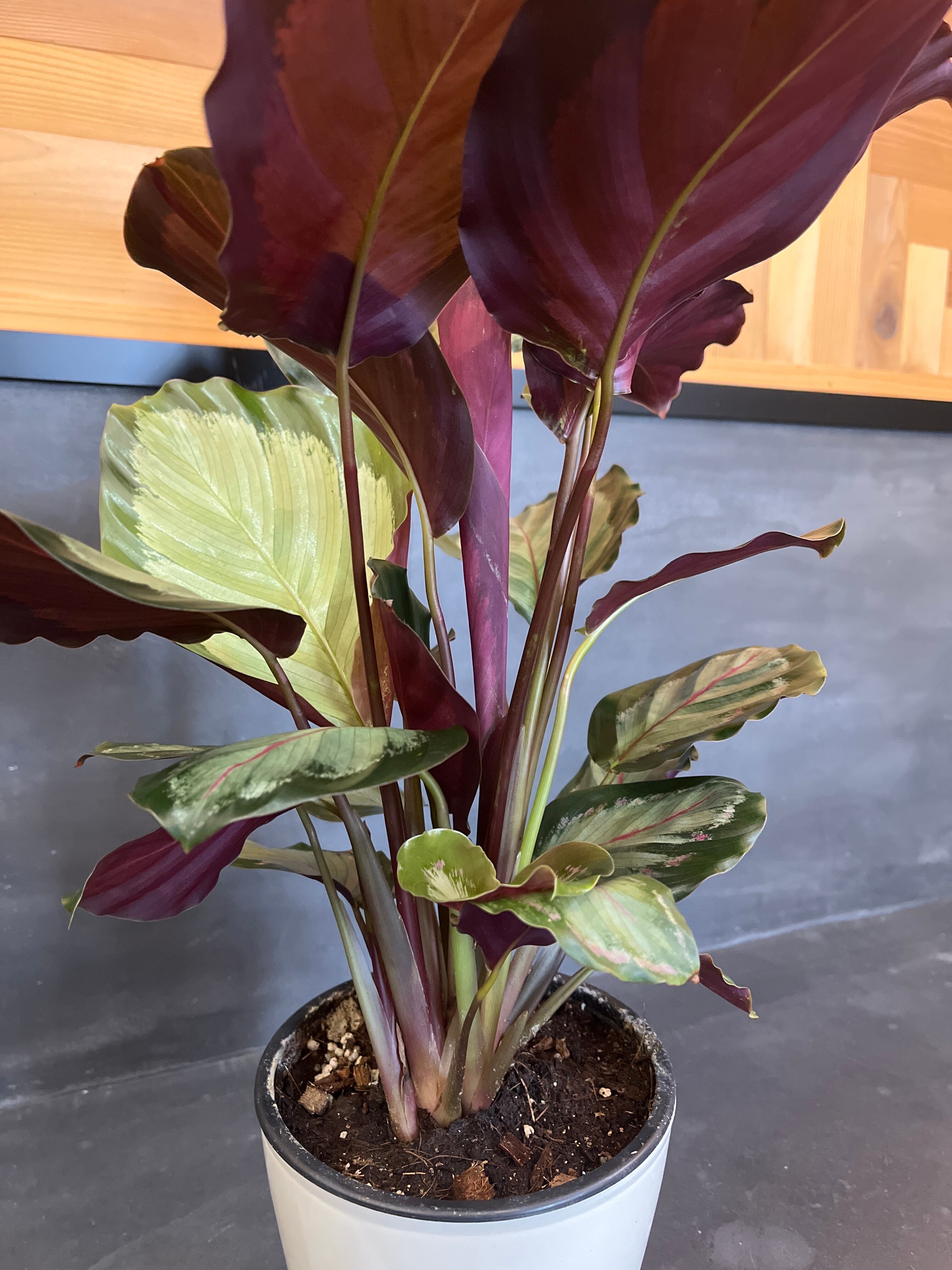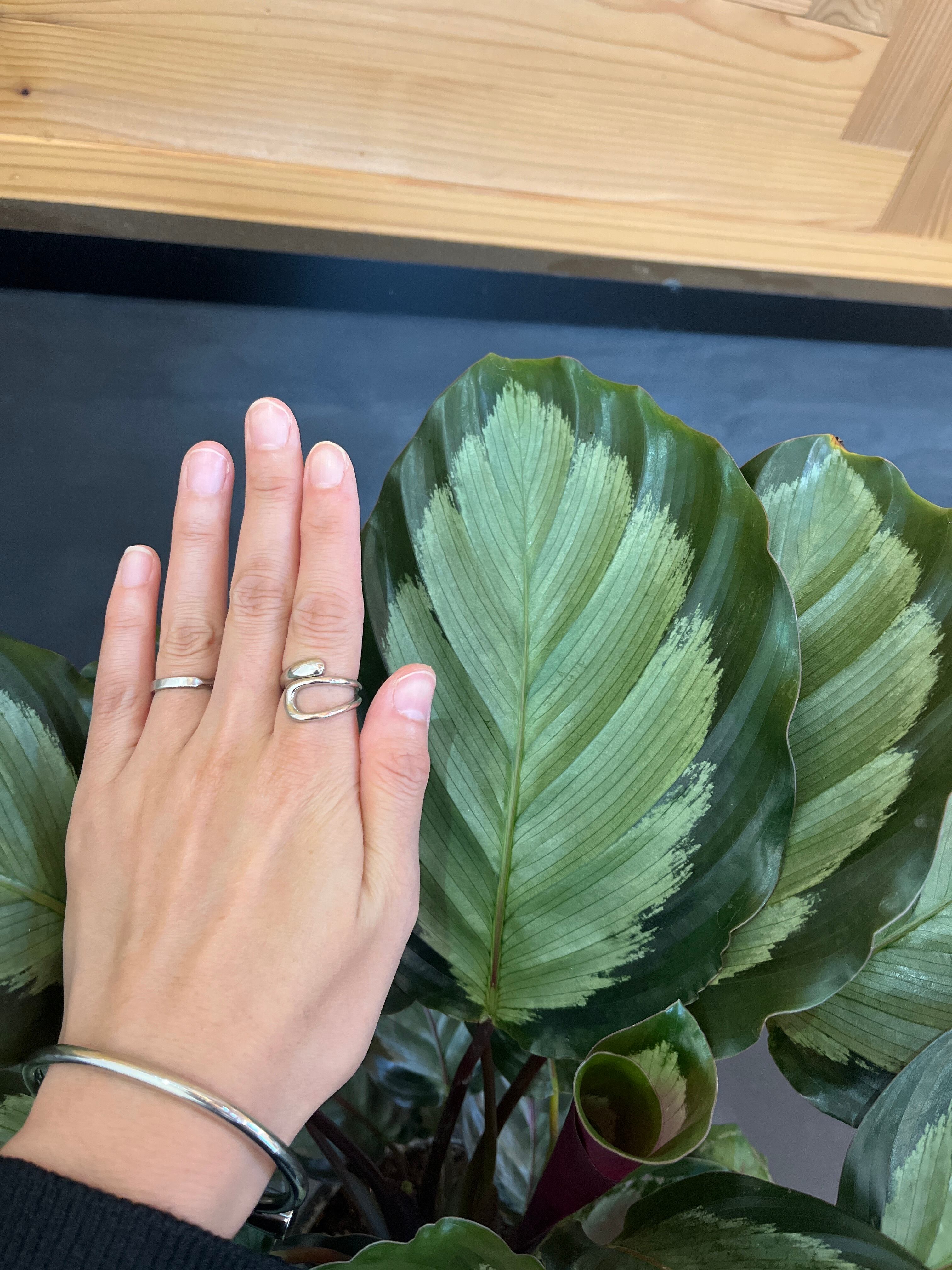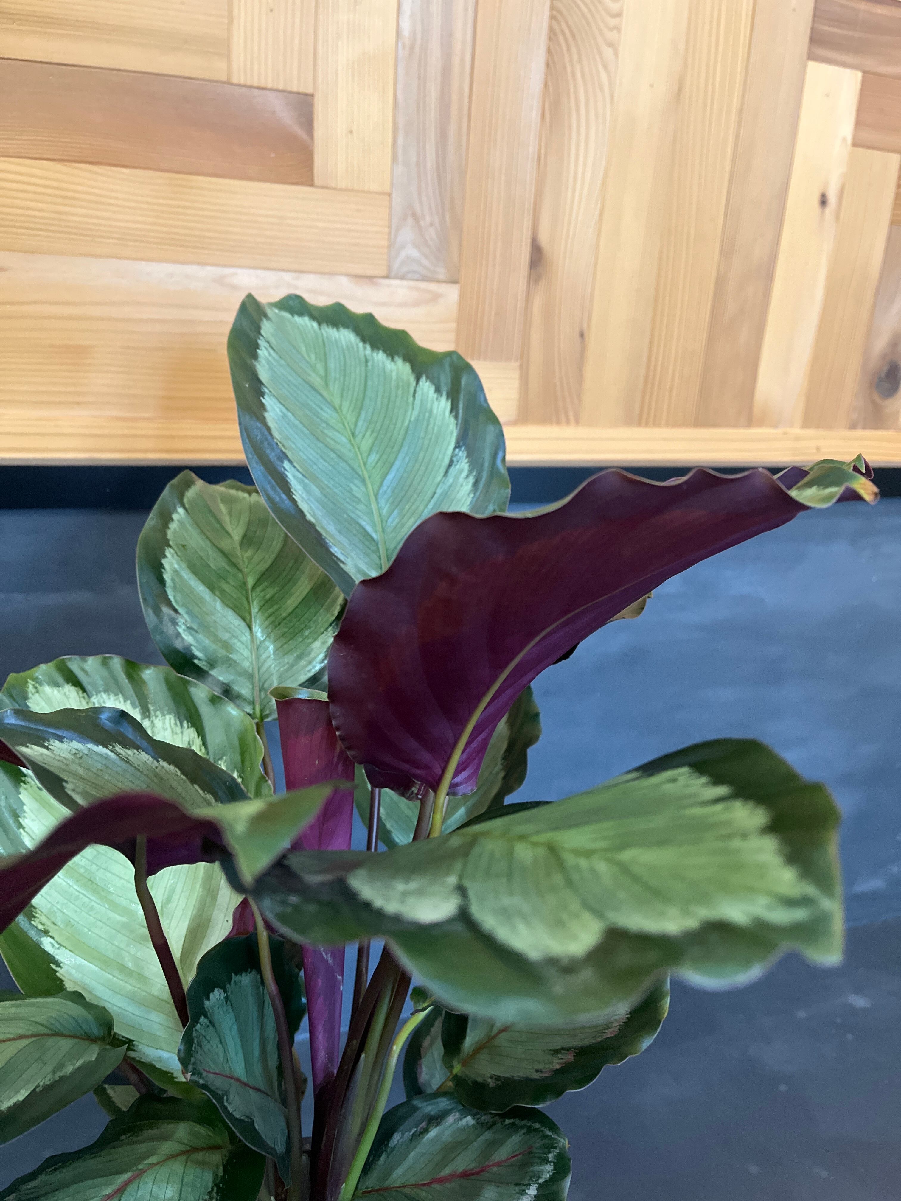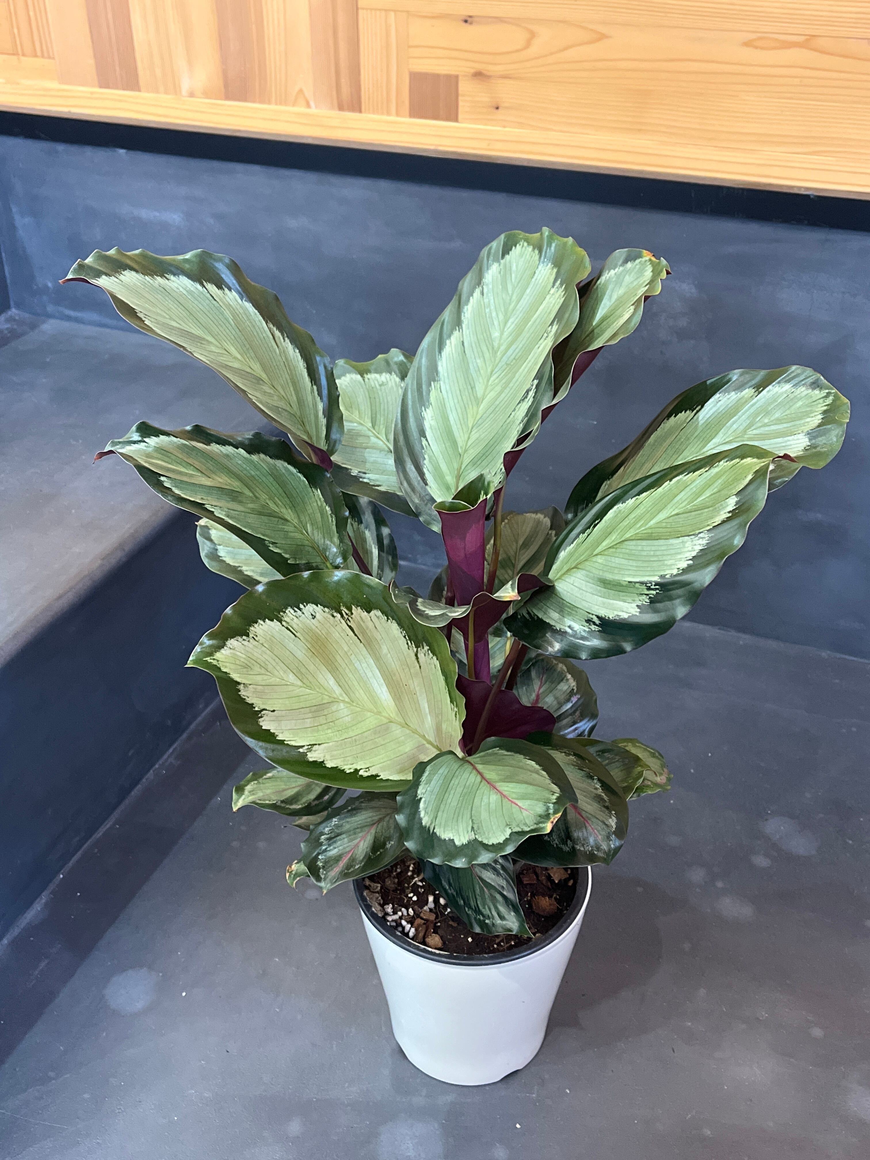 大柄な葉に銀白色の淡いカラーが印象的なカラテア・アルゲンティア。