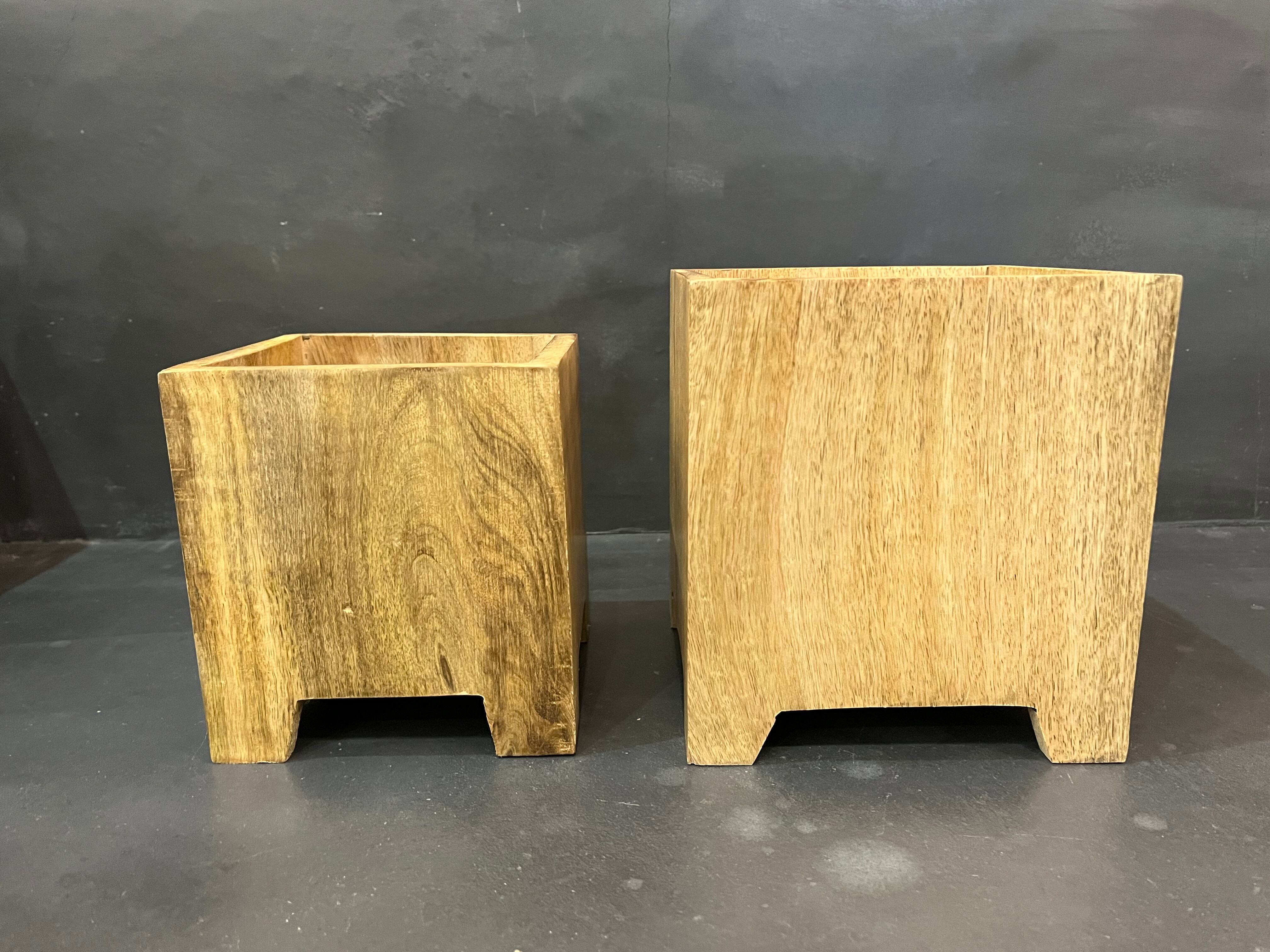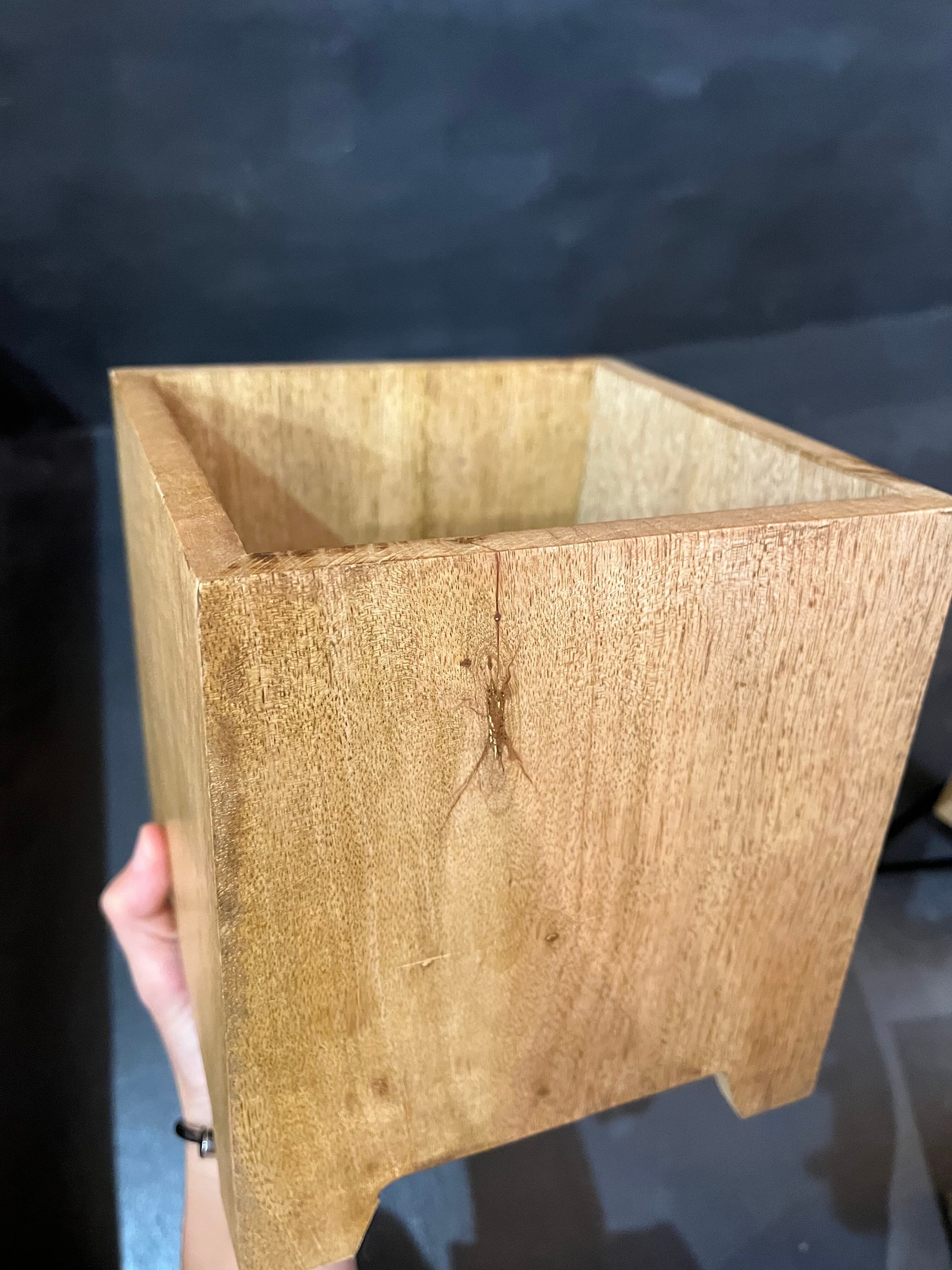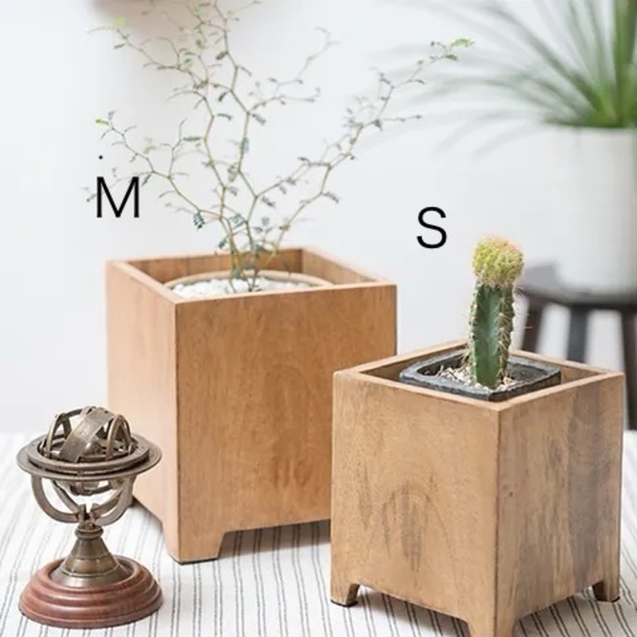 マンゴーウッドの一枚板を使用した、ちょこんと付いた足が可愛らしいポットカバー。