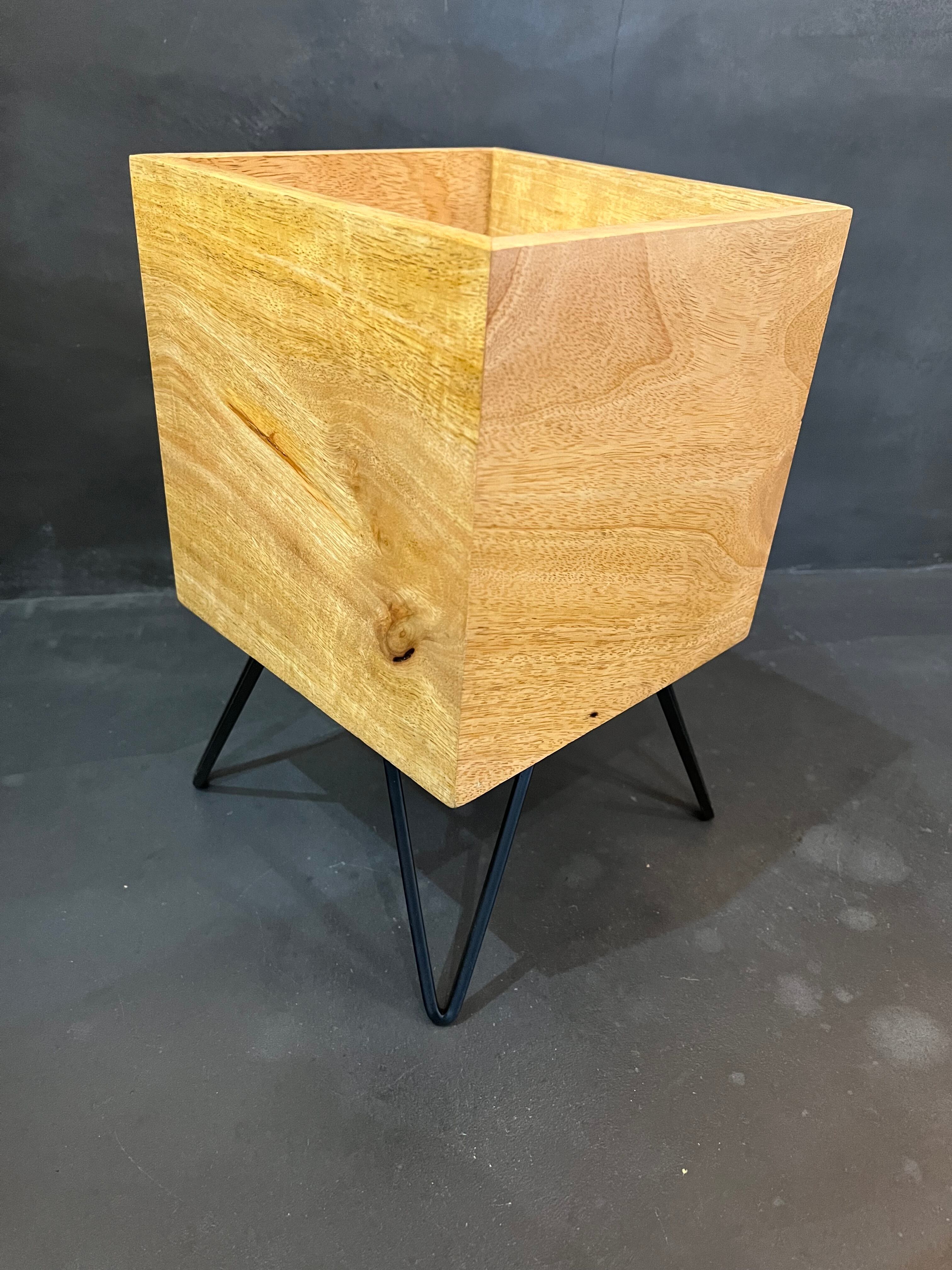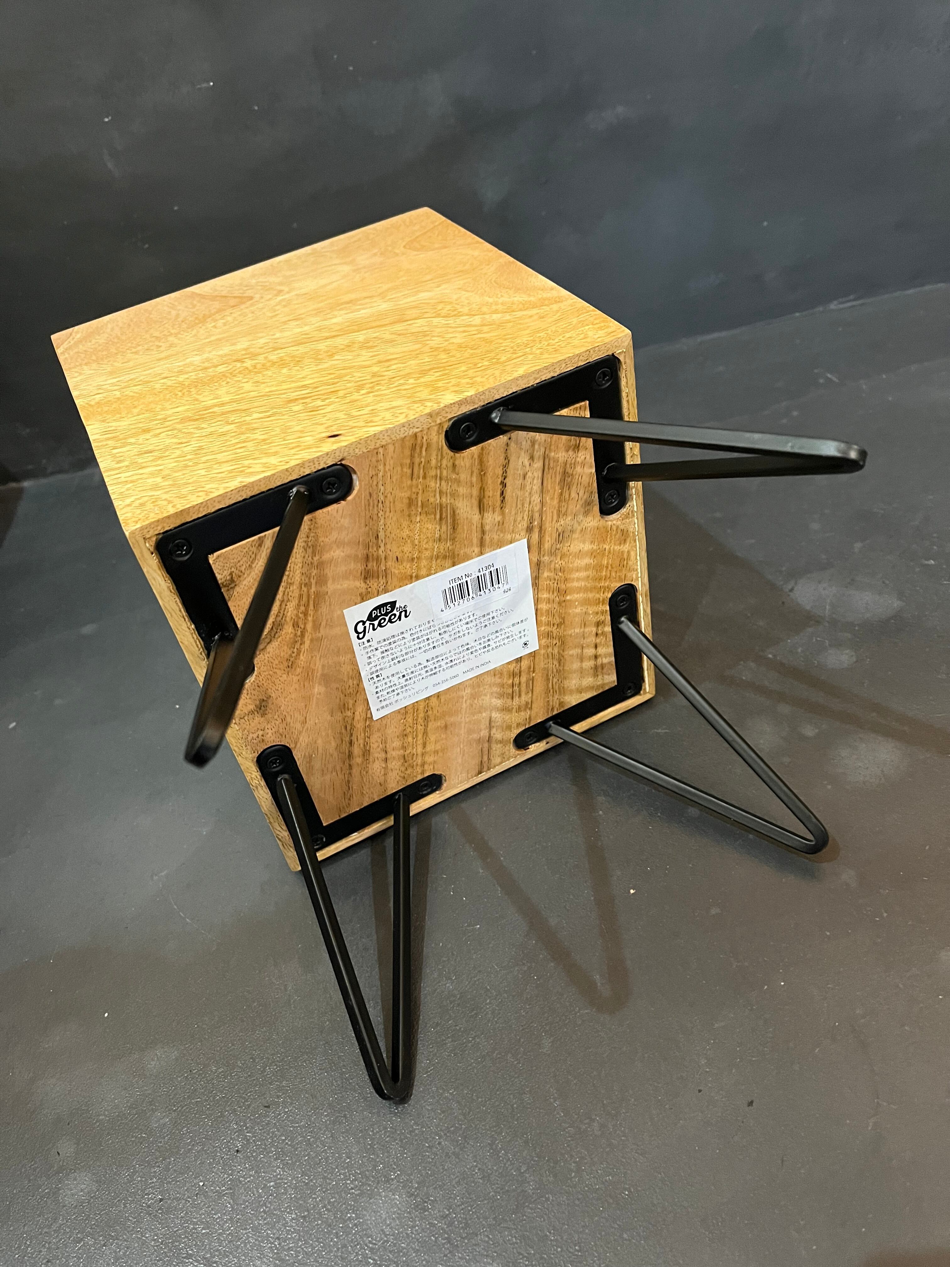 キューブ状のマンゴーウッドにアイアンの足を装着。